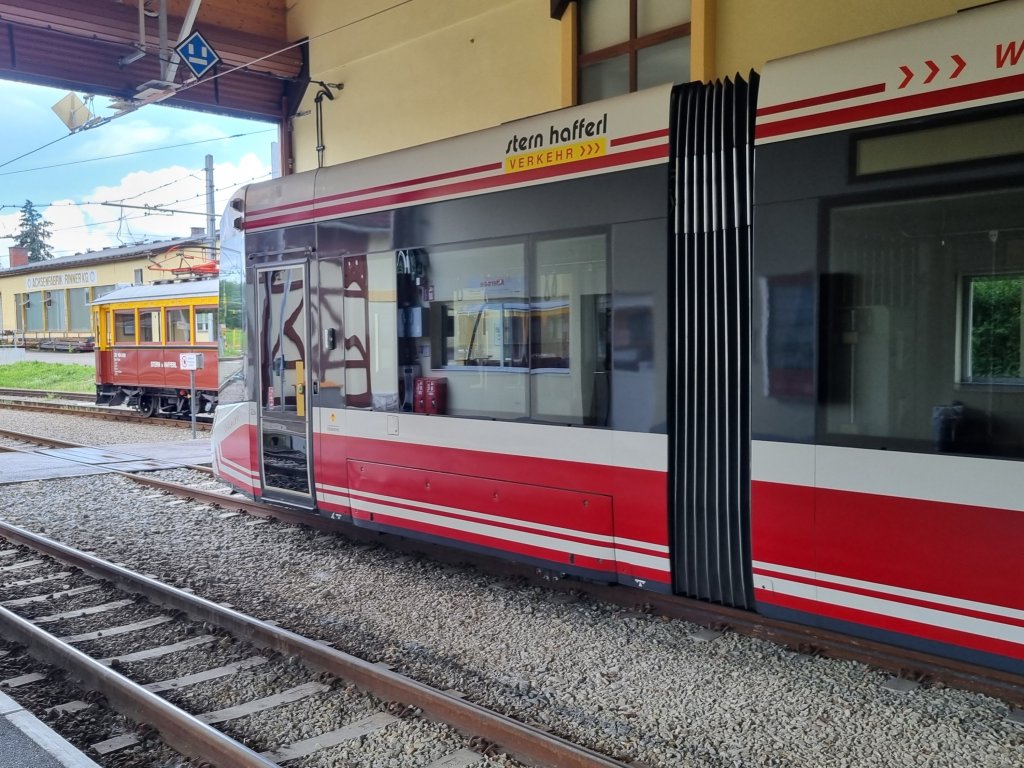 So habe ich einen Tag genutzt, mit dem Bus von Seewalchen zum gut 7 Kilometer entfernten Ort Attersee zu fahren und von dort mlt der Atterseebahn nach Vöcklamarkt (und zurück). Wenn man die Strecke nicht zu Fuß gehen will (auch weil der Weg teilweise auf einer engen Straße entlang geht, die man sich mit den Autos und Radfahrenden teilt), gibt es am Sonntag vier direkte Busverbindungen. Diese sind eigentlich auch auf die Abfahrtszeiten des stündlichen Zuges nach Vöcklamarkt abgestimmt. Nur wartet der Zug nicht auf den Bus. Wenn also der Bus – zum Beispiel wegen Verkehrsbehinderungen auf der engen Straße – nicht pünktlich an der Bahnstation ist, dann muss man eine knappe Stunde auf den nächsten Zug warten. Der wartet in Vöcklamarkt immerhin auf die Züge aus Richtung Salzburg oder Linz. Ich habe die Wartezeit in Attersee für einen kleinen Ortsbummel genutzt. Und man kann die Bahnfahrt auch für einen jeweils einstündigen Bummel in Vöcklamarkt und in St.Georgen nutzen. Wenn man nicht bis kurz vor 17 Uhr warten will, um mit dem Bus zurück zu fahren, kann man auch noch ein Ticket für den Nordkurs der Attersee-Schifffahrt nutzen und kommt für etwas über 10 Euro von Attersee nach Kammer. Mit einem kleinen Bummel an der Marina und dem Klimt-Garten vorbei ist man dann gut wieder zurück in Seewalchen.