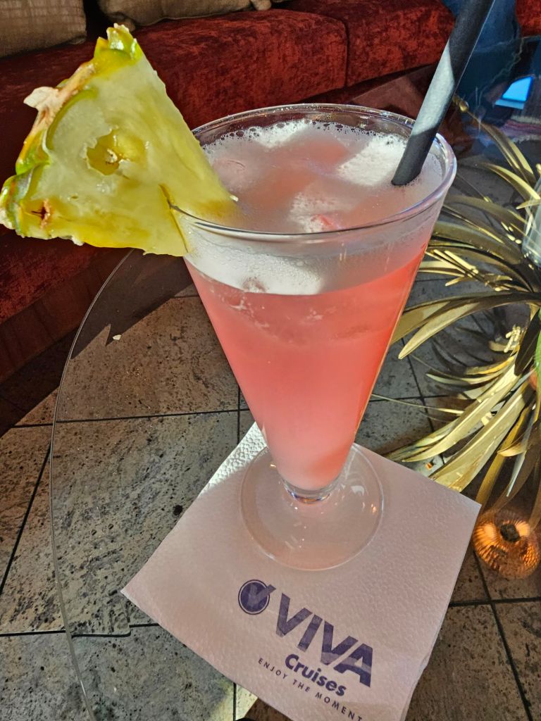 3. Ich wünsche mir mehr #GenussOhneAlkohol an Bord der VIVA-Schiffe. So wie es mittlerweile selbstverständlich ist, beim Essen neben der Berücksichtigung von besonderen Nahrungsmittelunverträglichkeiten attraktive vegetarische und vegane Angebote zu machen, die in Qualität und Präsentation genauso grossen Genuss wie die Alternativen Fleisch und Fisch bieten, sollte es endlich auch selbstverständlich sein, dass Genuss bei den Getränken auch ohne Alkohol geht und mehr als Softdrinks und Saftschorlen bieten kann. Es gibt beim Cocktail des Tages immer zwei Angebote – einmal Alkoholfrei und einmal mit Alkohol -, und immerhin auch alkoholfreies Bier sowie alkoholfreien Wein und Sekt auf der Barkarte. Ich habe den alkoholfreien Wein in beiden Varianten – weiß und rot- probiert: die schmecken mir weit weniger gut als die wirklich guten Traubensäfte von weißen und roten Trauben zum Beispiel von der Firma Bauer aus Bad Liebenwerda https://www.bauer-fruchtsaft.de/fruchts%C3%A4fte , die ich für Events im Büro kaufe.