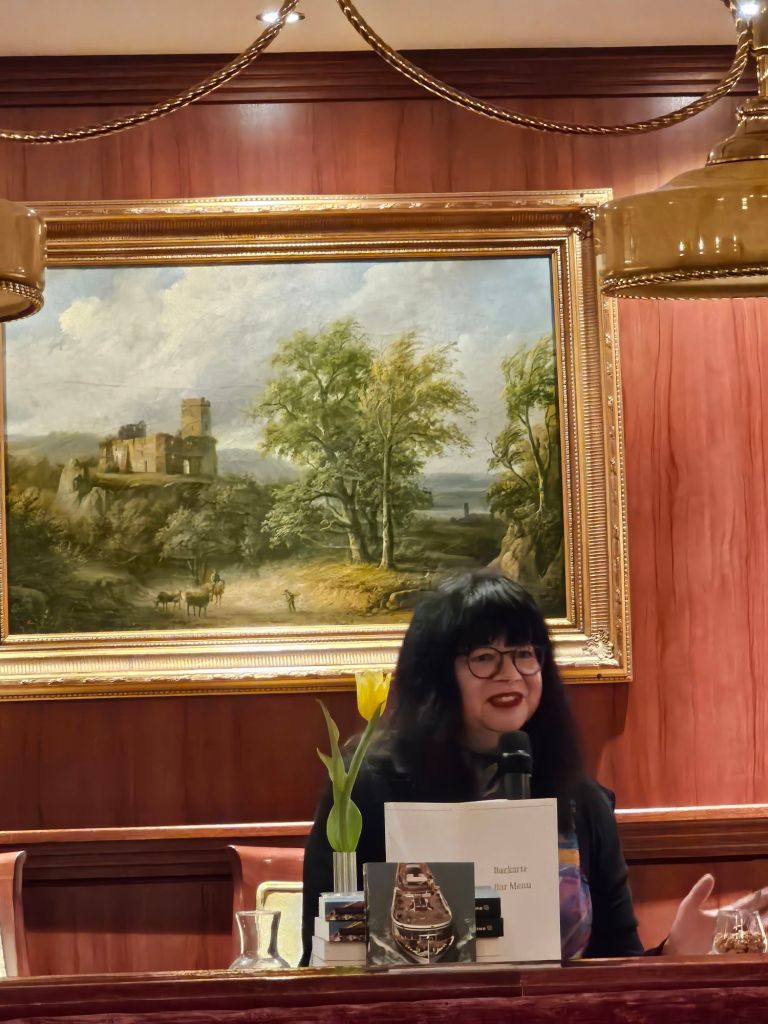 Die erste Lesung fand aufgrund von Bahnstreikbedingten Anreiseverzögerungen erst am Sonntag Abend statt, nachdem die Autorin in Magdeburg zugestiegen war: Die Autorin Claudia Schmid las aus ihrer Sammlung „Tödliche Flusskreuzfahrten“. Die Lesung hatte wenig Begeisterung im Publikum; vielleicht zu viel Selbstdarstellung und zu wenig Spannung.