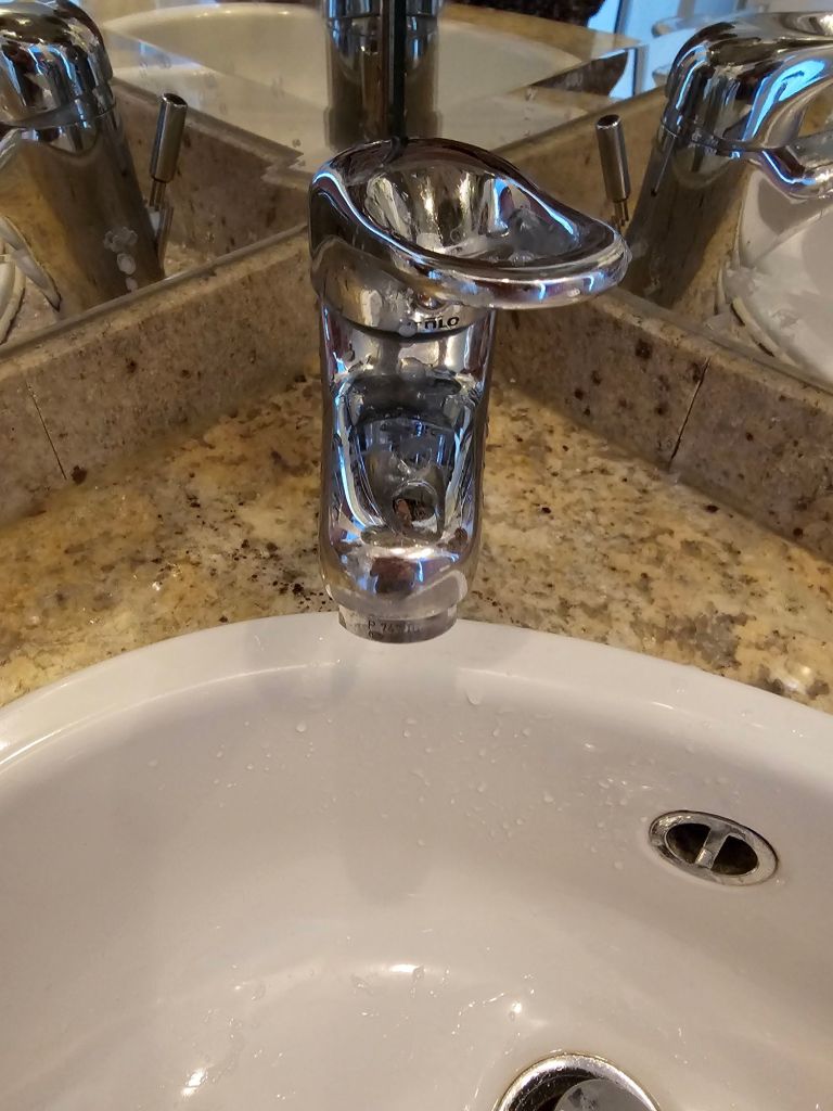 2. Derjenige, der das Badezimmer und die Amaturen im Bad geplant hat, sollte vielleicht bedenken, dass der Wasserauslass auch so weit ins Waschbecken hineinreichen sollte, dass man sich bequem die Hände waschen kann und dabei nicht an den hinteren Teil des kleinen Waschbeckens stößt.
