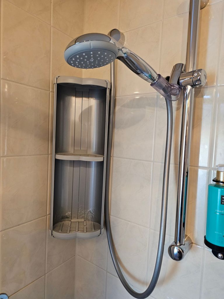 Und wo sonst bei VIVA mit der modernen Regenwasserdusche geworben wird, scheint diese Duschkonstruktion, die eher an eine Laube erinnert, nicht bewusst zu sein. Aber immerhin kommt warmes Wasser raus und der Regler funktioniert.