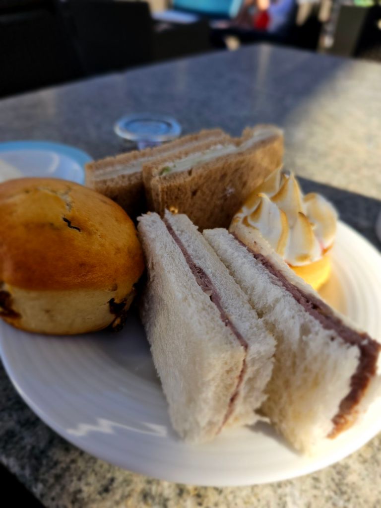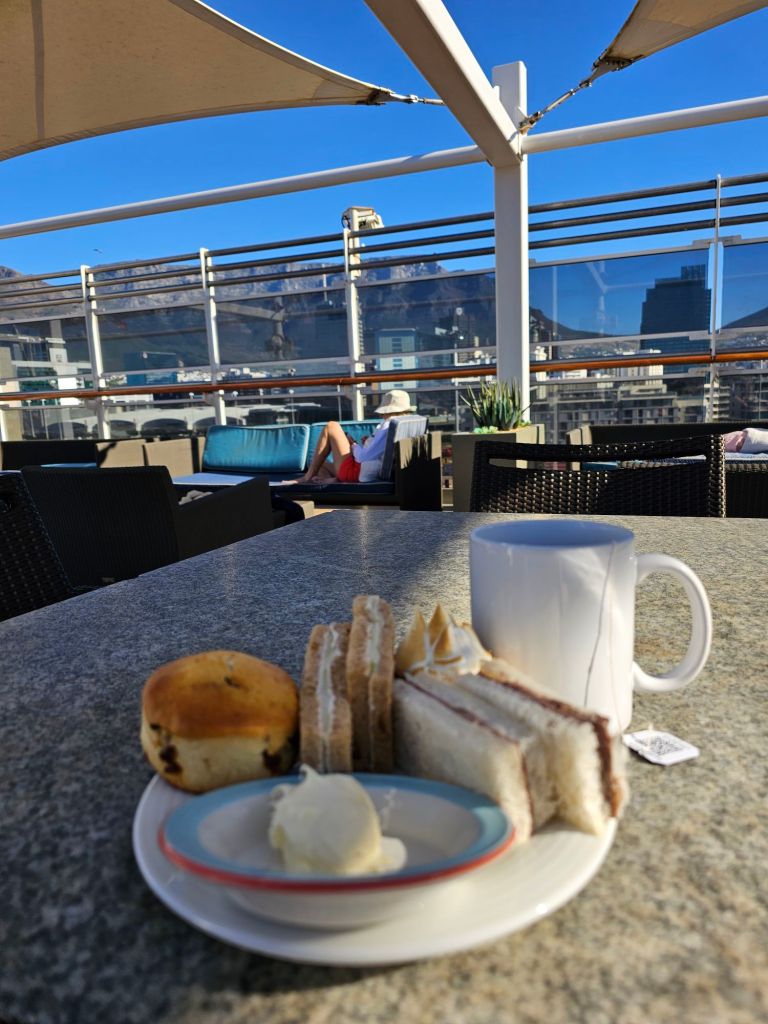 Obwohl es an diesem Landtag auch Afternoon-Tea im Queensroom gab, war es schön, Sandwichs, Scones und Süßes im Lido zu finden und es draußen mit Blick auf den Tafelberg zu genießen.