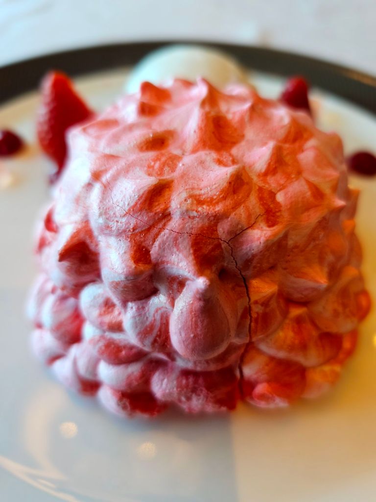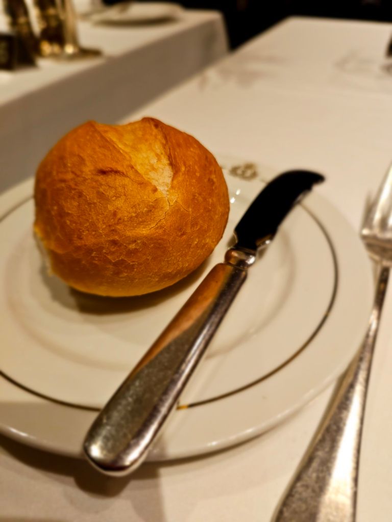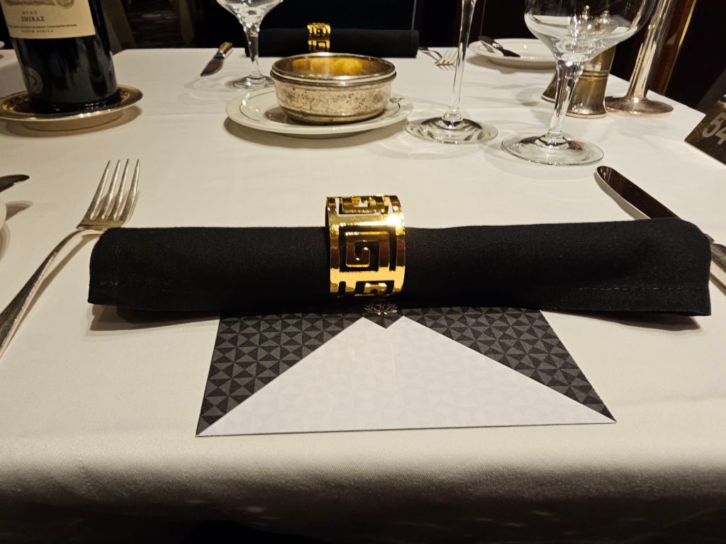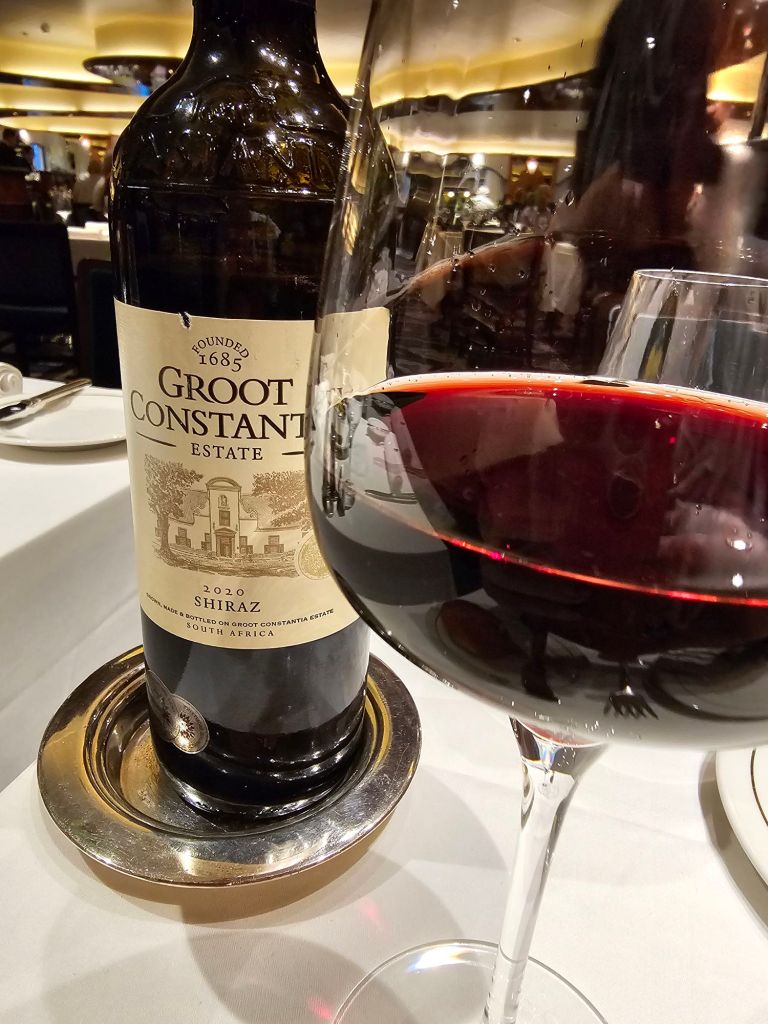 Cunard bietet mittlerweile drei Optionen für die Essenszeiten zum Abendessen an: Neben dem 1.Sitting um 17.45 Uhr und dem 2.Sitting um 20.15 Uhr gibt mittlerweile auch „Open Sitting“ zwischen 17.45 Uhr und 21.00 Uhr. Auch hier gibt es Fans der verschiedenen Optionen. Viele wollen die Freiheit, jeden Tag zu entscheiden, wann sie essen wollen. Diese Freiheit ist verbunden mit der Tatsache, dass es zu besonders beliebten Zeiten zu Wartezeiten kommen kann und man jedes Mal an einem anderen Tisch sitzt. Ich persönlich bevorzuge die Variante einer festen Essenszeit mlt einem festen Tisch und Kellner*innen, die über die Reise hinweg nicht wechseln. Und im Gegensatz zu vielen, die die frühe Essenszeit wollen, mag ich das 2.Sitting. Die feste Essenszeit gibt mir Struktur in einem ansonsten sehr meinen Bedarfen angepassten Tagesablauf. Und ich schätze es, wenn ich die Kellner kenne – und sie mich und meine besonderen Wünsche. Zudem kann ich den Wein zum Abendessen als Flasche aussuchen: er wartet auf mich, wenn ich zum Tisch komme und es gibt ein Glas nach Bedarf anstatt immer nur den Wein glasweise zu bestellen. Und der Weinkellner war sehr freundlich und kompetent – ich war sehr froh, dass er mich die ganze Zeit begleitet hat.