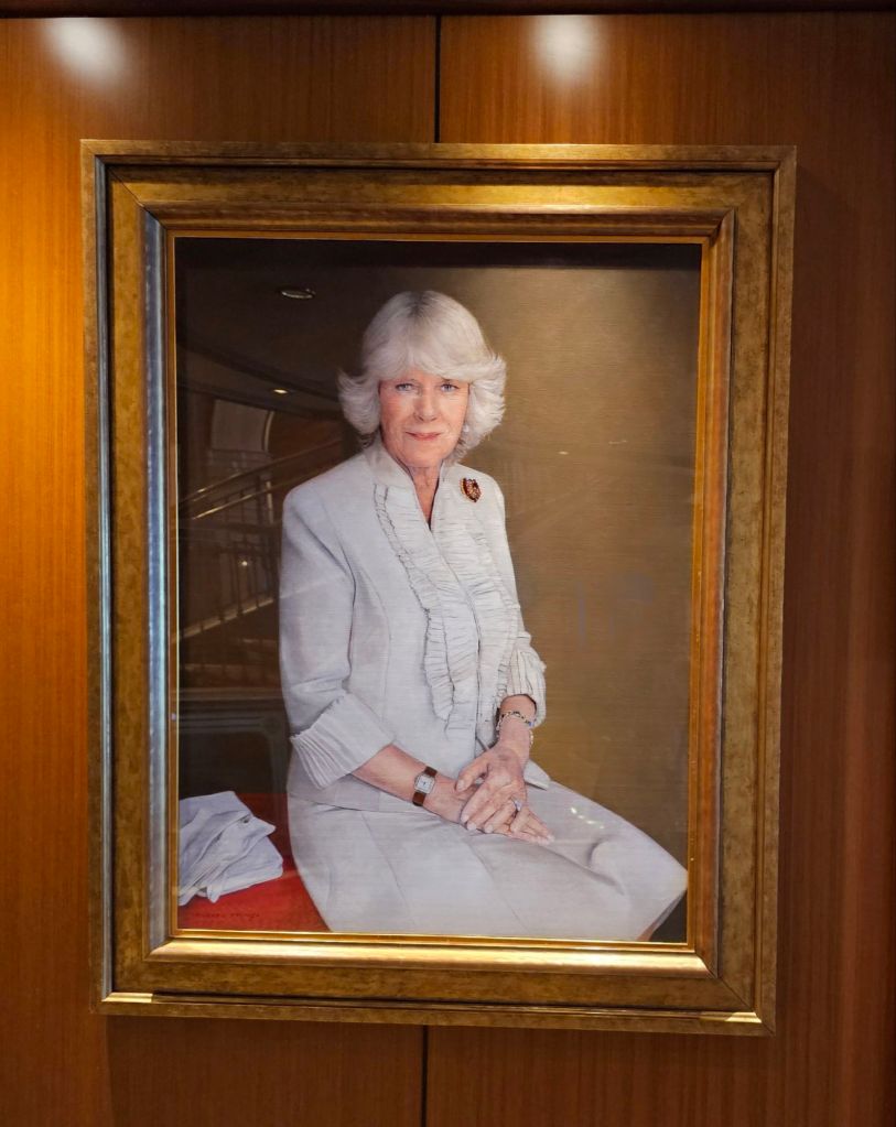 Queen Camilla, deren Porträt auf der Queen Victoria im Eingangsbereich hängt, und die als Herzogin von Cornwall das Schiff 2007 getauft hat, nachdem sowohl die Queen Elizabeth und die Queen Mary2 von der Königin Elizabeth II getauft wurden?