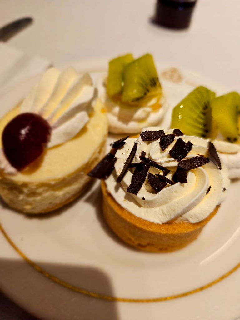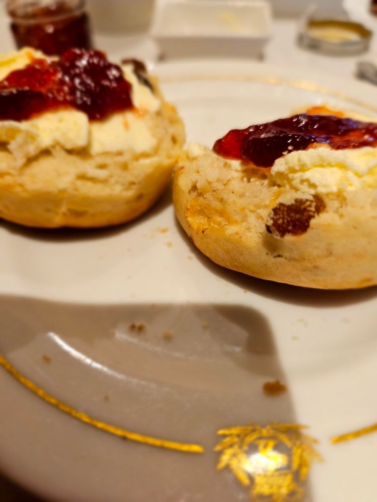 Ich verzichte an Seetagen meist auf den Lunch und genieße stattdessen die Tea-Time um drei Uhr im Queensroom. Auf dieser Reise war das wieder die entspannte und stilvolle Veranstaltung, die ich bei meiner ersten Reise mit der Queen Victoria 2022 kennengelernt hatte. Zwischenzeitlich war ich bei meiner Kurzreise im Oktober 2023 mit der Queen Mary2 etwas ins Zweifeln geraten, weil dort die Teatime etwas hektisch und überfüllt war. Auf dieser Reise ist es entspannt, man braucht nicht eine halbe Stunde früher zu kommen, sondern findet auch kurz vor drei noch einen Platz und kann sich auf Sandwichs, kleine Kuchen und frische Scones mit clotted Cream und Erdbeermarmelade freuen. Und das läuft ganz überwiegend sehr gut organisiert ab, auch wenn es an manchen Tagen etwas ungewöhnlich wirkte, wenn die Kellner mit ihren beladenen Tabletts kurz vor meinem Tisch umkehrten. Ein großes Danke an Paula und Askov, die diese Stunde im Queensroom wunderbar managten. Für mich ist das perfekte kleine Mahlzeit am Tage zwischen Frühstück und Dinner.