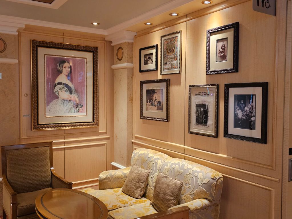 Dazu gehört auch, dass auf jedem Cunard-Schiff die Royal Familiy in Porträts und kleinen Ausstellungen präsent ist und jedes neue Schiff von einem Mitglied der Royal Family getauft wurde.