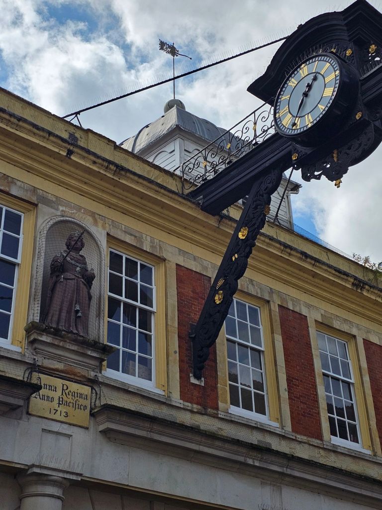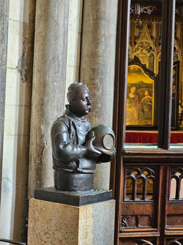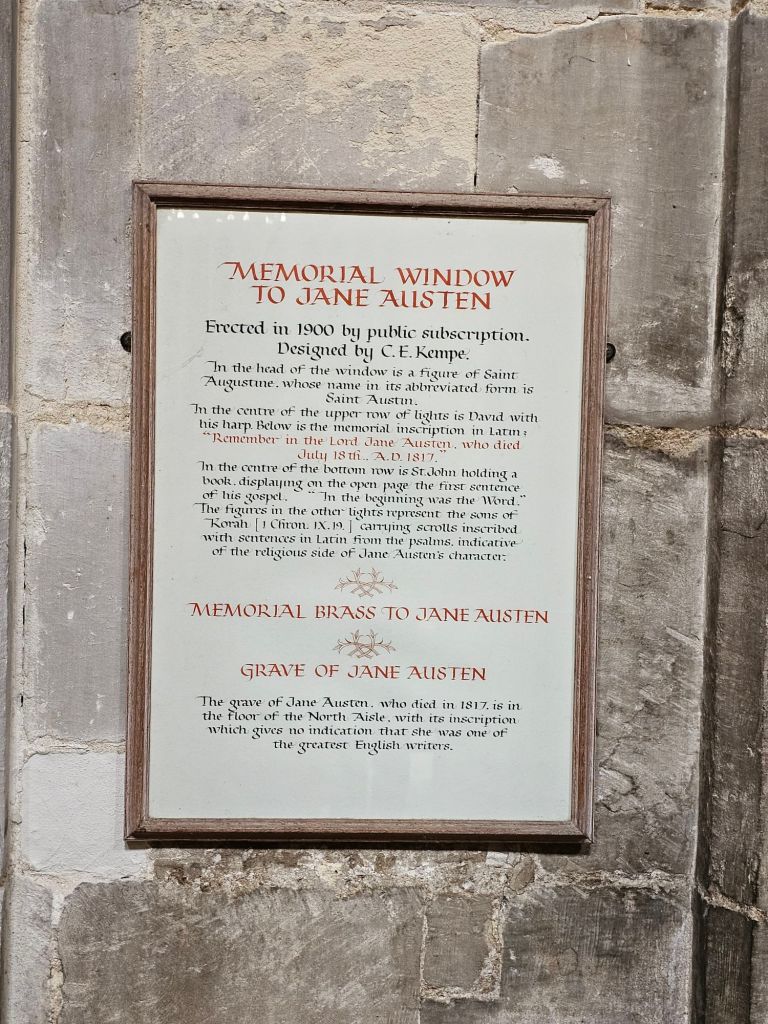 Ich habe diesen Sonntag genutzt, einen Ausflug nach Winchester zu machen, der Einfachheit über Cunard organisiert, was den Vorteil hatte, dass der Bus direkt vor dem QEII-Terminal stand. Winchester hat eine beeindruckende Kathedrale und eine typisch englische kleine Fußgängerzone – perfekt für einen kurzen Ausflug in das, was man sich unter England vorstellt. Das Wetter war am Vormittag noch kalt und regnerisch, wechselte aber über Mittag zu Sonne und angenehmen Temperaturen. In der riesigen Kathedrale bekommt man einen Eindruck, wie das Zusammenspiel von Kirche, Militär und Monarchie in der englischen Gesellschaft funktioniert. Und interessant ist, dass neben den vielen Grabplatten die für Jane Austen die einzige ist, die durch viele aktuelle Mitbringsel zeigt, wie hoch ihre Bedeutung immer noch ist – und sie ist neben der Queen die einzige Frau, die auf einem Geldschein (dem über 10 £) zu sehen ist.