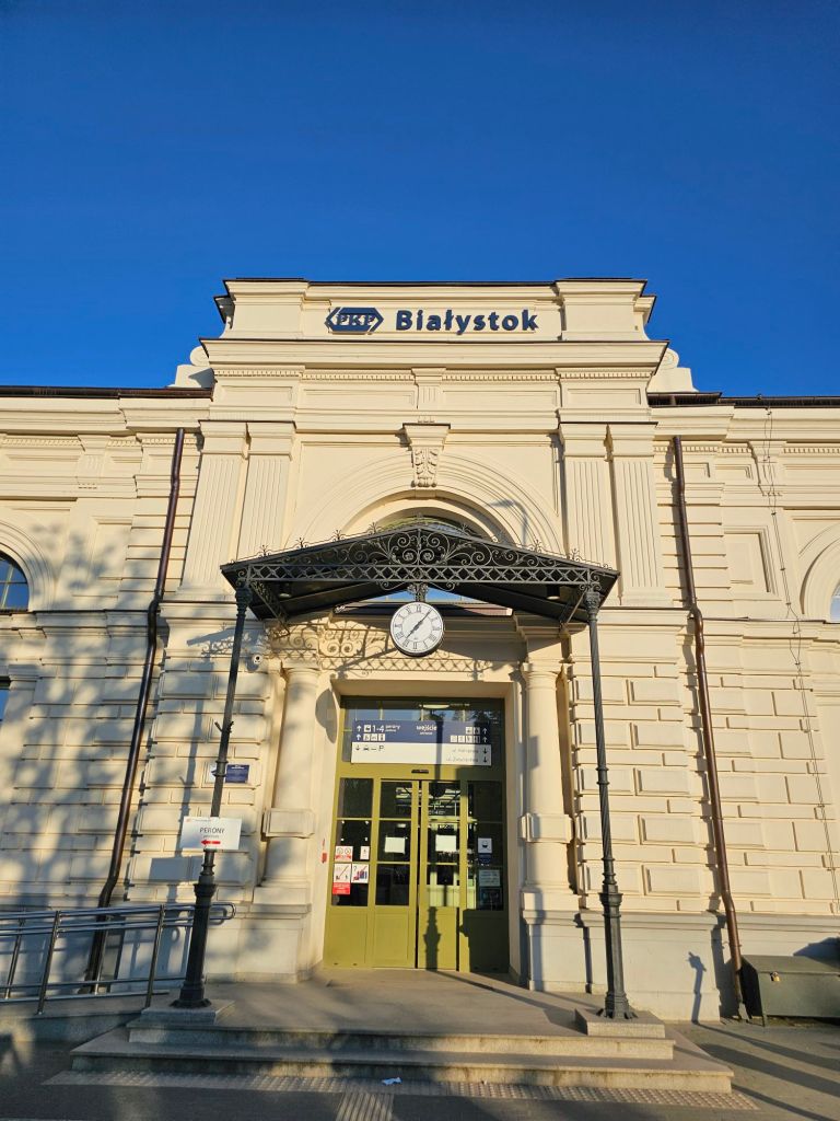 Diese 8-tägige Reise startet am Berliner Hauptbahnhof, um – so die Teilnehmenden die Option der gemeinsamen Anreise nutzen – mit dem IC nach Bialystok mit Umsteigen in Warschau zu reisen. Die meisten Mitreisenden nutzen diese Option, aber einige stoßen auch erst in Bialystok zur Gruppe oder reisen selbst organisiert auf anderen Wegen am Ende der Reise zurück. Die Strecke von Berlin nach Bialystok schafft auch für die, die alleine reisen, im Abteil erste Gelegenheiten des gegenseitigen Kennenlernens. Wer mit der polnischen Eisenbahn fährt und nur polnische Ansagen hört, weiß übrigens #thänkyuuforträvelingwithdeutschebahn anders zu würdigen – man versteht nix von den Ansagen und freut sich bei der Gruppenreise, dass einige das Polnisch verstehen und man deshalb keine Sorge hat, wichtige Informationen zu verpassen.