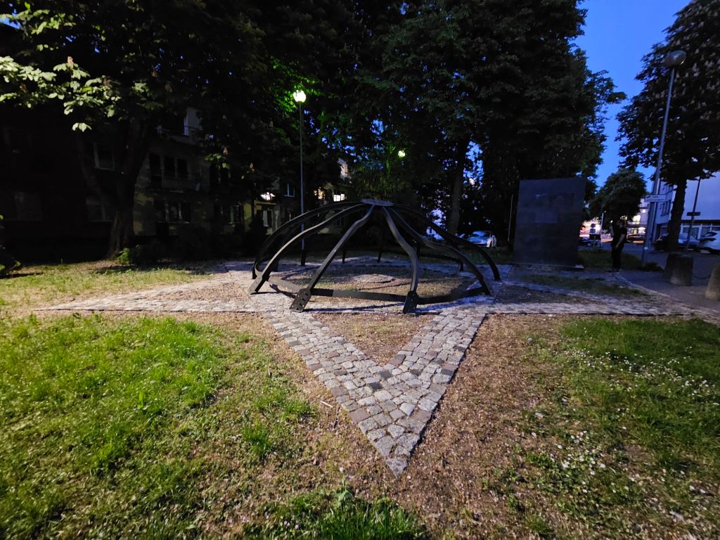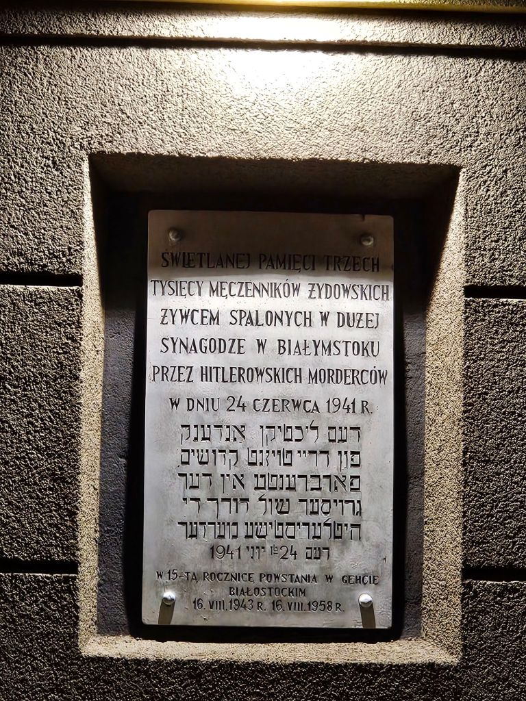 Die erste Übernachtung ist im polnischen Bialystok und nach dem Zimmerverteilen und Abendessen im Hotel geht es abends noch in der Gruppe zum Gedenkort für die Große Synagoge und zum ersten (aber nicht zum letzten) Mal sieht und spürt man die Zerstörung und Vernichtung von Orten eines vielfältigen jüdischen Lebens in den verschiedenen Orten Osteuropas.
