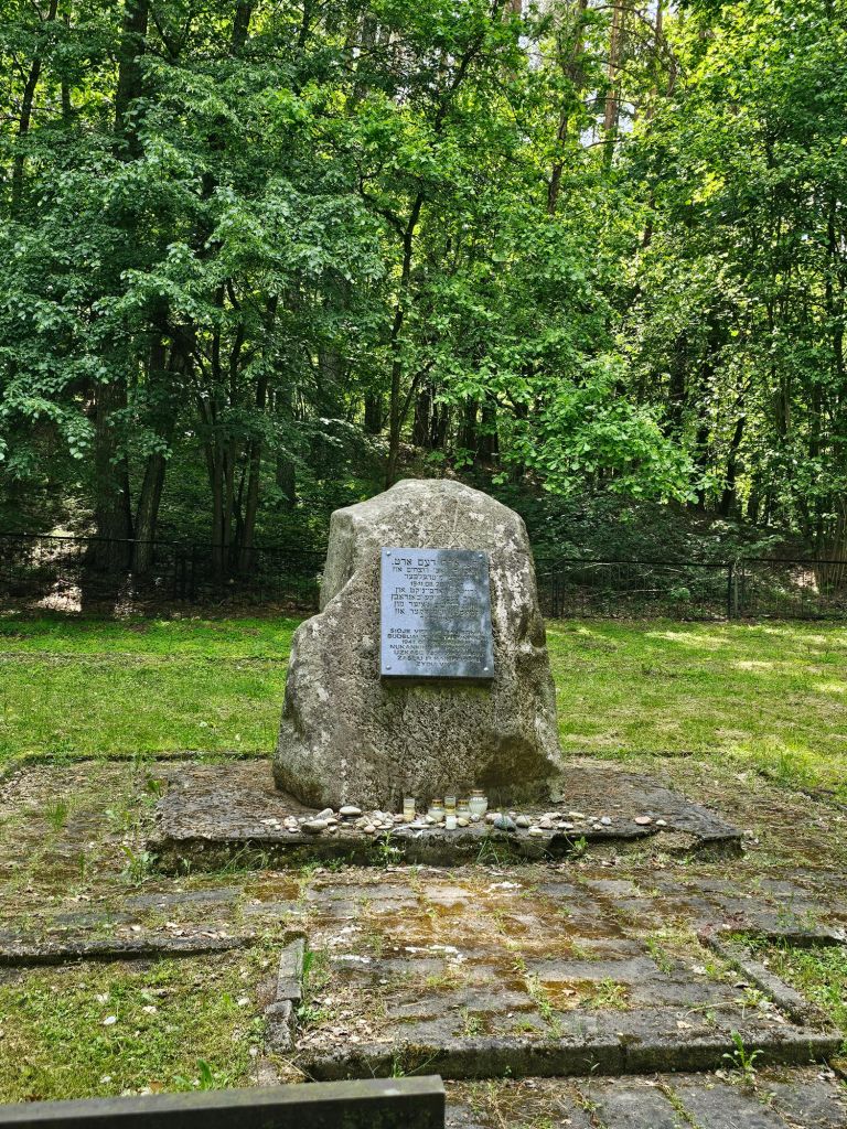 Gedenkstein am Erschießungsort von Tausenden Juden der umliegenden Landgemeinden im Wald