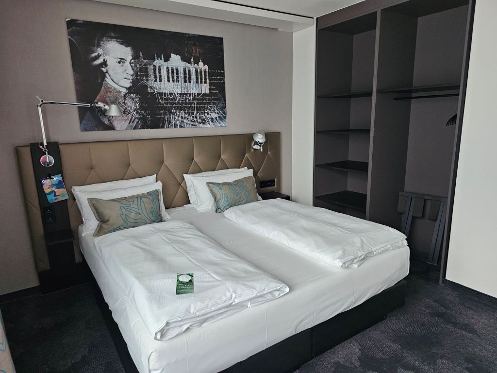In Salzburg habe ich im MotelOne Salzburg-Mirabell übernachtet. Die Zimmer haben zwar Festspielpreise, aber im Vergleich zu anderen Möglichkeiten, fussläufig zum Festspielbezirk zu kommen, ein gutes Preis-Leistungsverhältnis. Für einen etwas höheren Preis bekommt man auch ein Zimmer mit Balkon, dass insgesamt mehr Fläche hat.