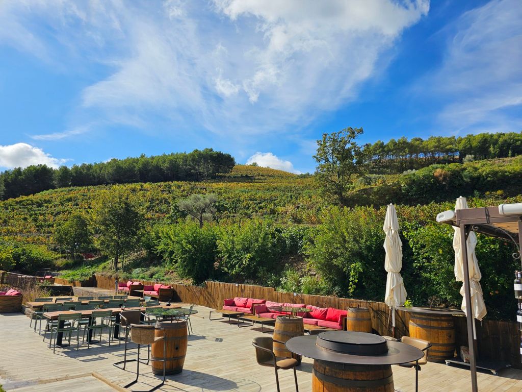 Nach einer (kurzen) Besichtigung des Weinkellers des Weingutes La Font des Peres gab es eine Verkostung von 5 Weinen und dann einen Lunch mit drei Gängen und weiterem Wein. Der dort angebaute Wein wird nicht über den Weinhandel vertrieben, sondern vor allem über die drei Restaurants des Hauses konsumiert oder von Gästen direkt mitgenommen.