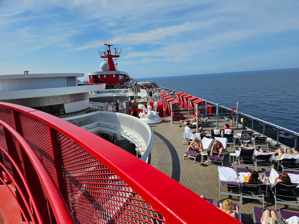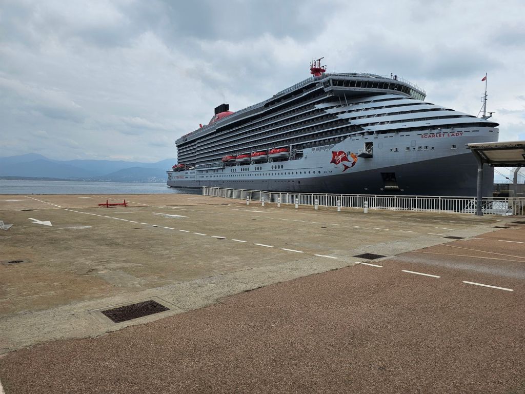 Der Seetag zwischen Marina di Carrara und Ajaccio auf Korsika war vermutlich weniger den Entfernungen zwischen den Häfen sondern mehr der Tatsache geschuldet, dass es auch Seetage auf solchen Reisen geben muss. Er endete mit der Scarlet Night – das was bei Virgin das besondere Event ist. Es gilt eigentlich „Red is a must“, hat am Abend auf den Decks 6 und 7 viele kleine Events und geht in eine legendäre Poolparty mit open end über.