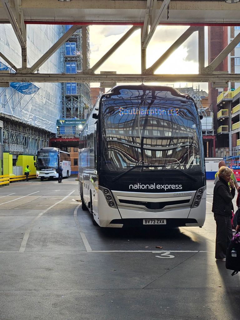 Der nächste Tag war dann der entspannten Weiterreise nach Southampton vorbehalten. Und die habe ich mit dem Fernbus gemacht. War sehr entspannt und günstig ab der Victoria Coach Station.
