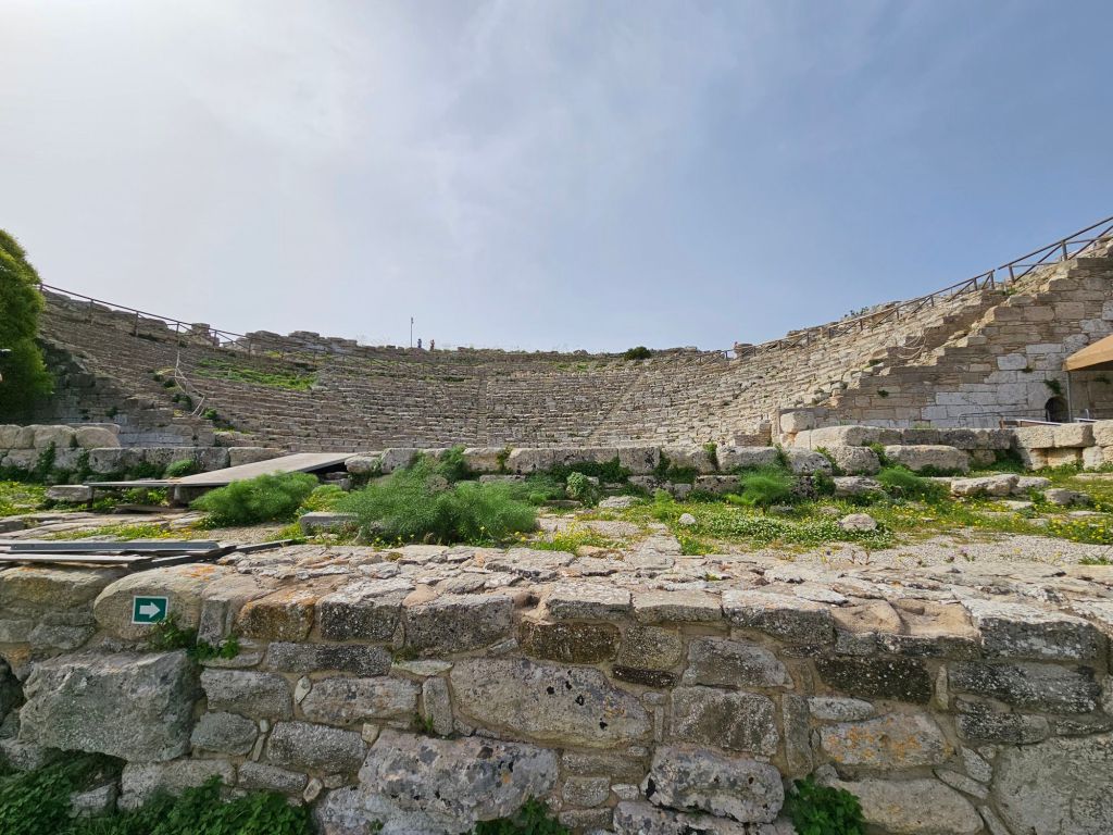 Vom griechischen Tempel kommt man mit einem Shuttlebus zu den Ausgrabungen der römischen Stadt mit dem Theater – und einem Blick auf Castellammare. Hier ist noch lange nicht alles ausgegraben – viele Bereiche der dortigen römischen Stadt können noch entdeckt werden. Aber schon das römische Theater ist besuchenswert.