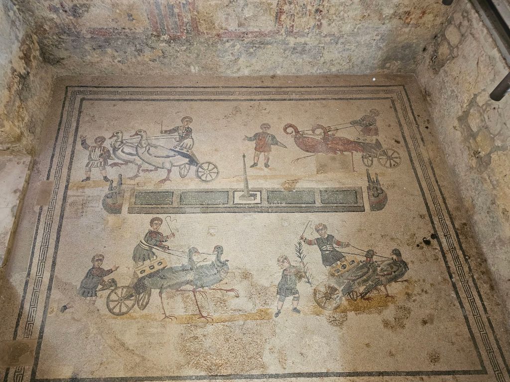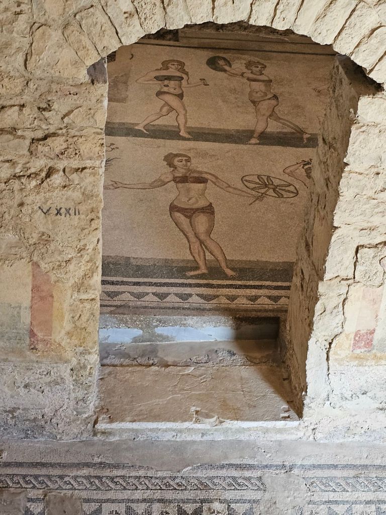 Der große Komplex der römischen Villa https://de.wikipedia.org/wiki/Villa_Romana_del_Casale ist berühmt für seine Bodenmosaiken.