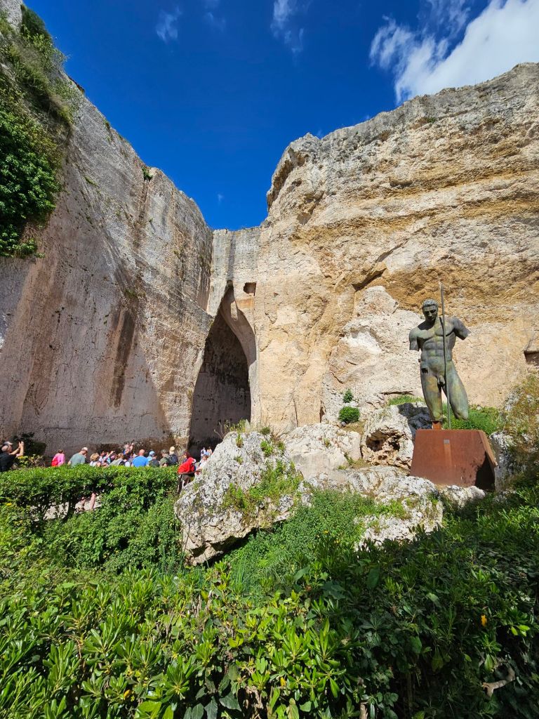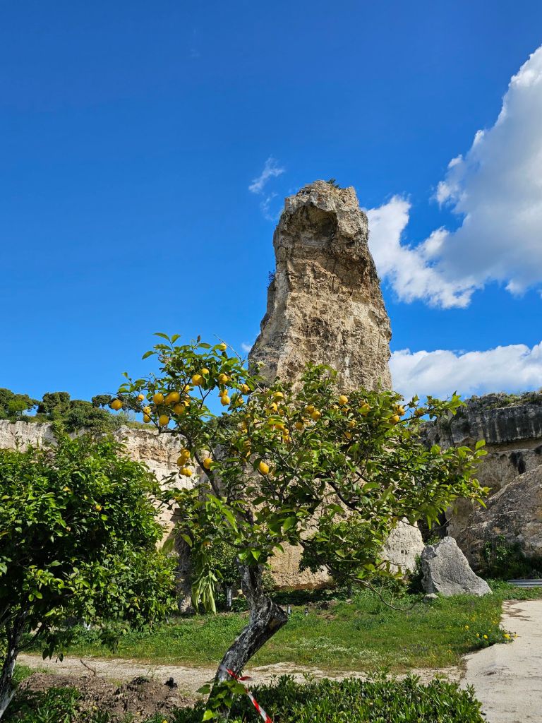 Am Karfreitag ging es nach Syrakus. In der Neapolis liegt das griechische Theater direkt neben den Steinbrüchen, in denen Zwangsarbeiter die Steine für die umliegenden Sakral- und Theaterbauten abbauen mussten. Hier wandelt man auf dem Weg zum griechischen Theater durch eine parkähnliche Anlage, in der die Zitrusbäume duften und dem ganzen einen besonderen Reiz geben.
