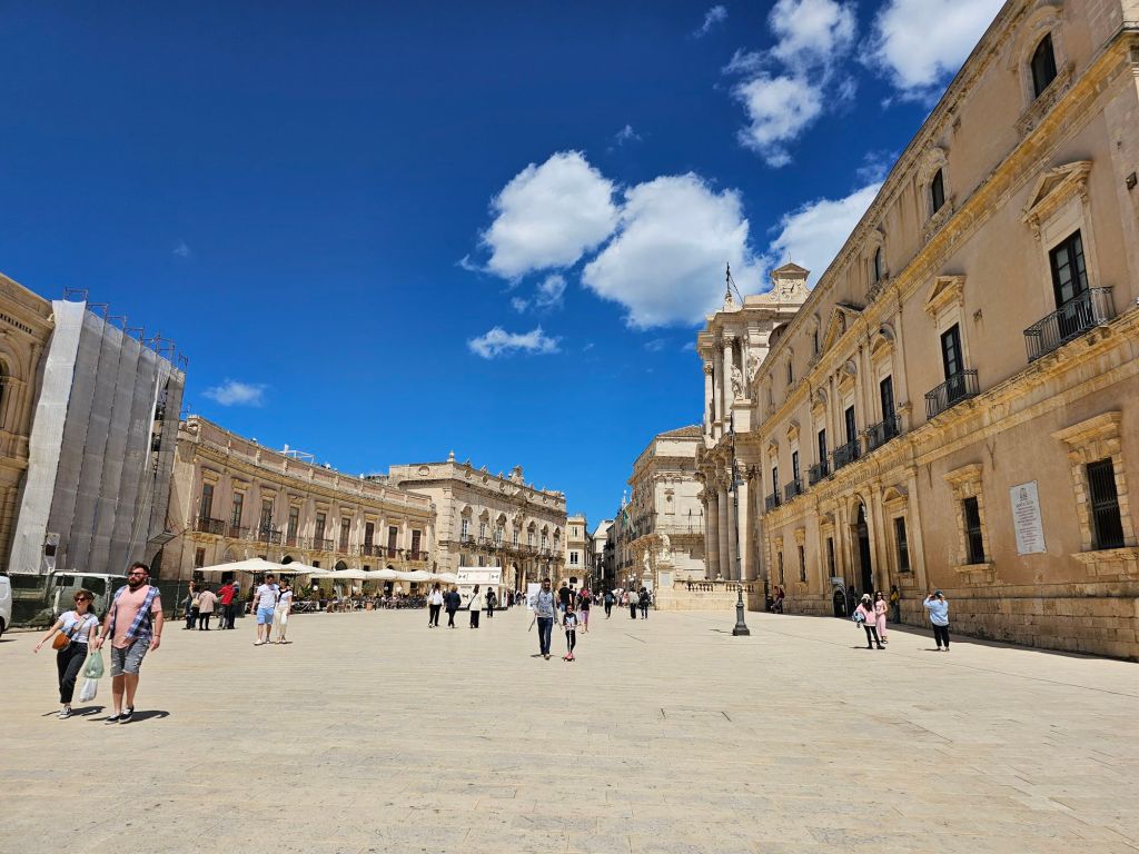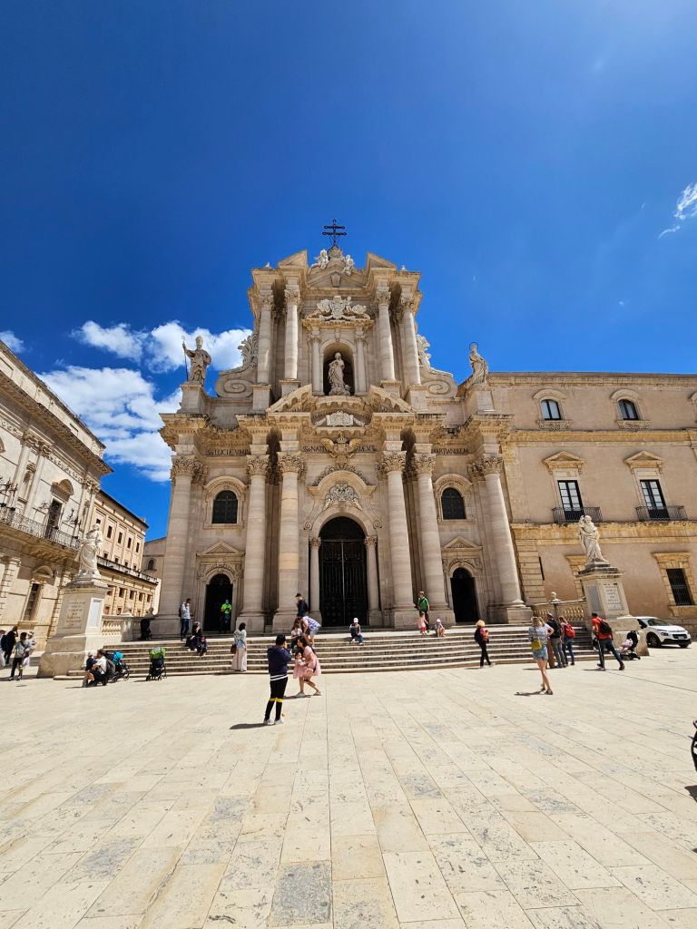 Deshalb nun eine Reise in ein mir bisher unbekanntes Sizilien. Die größte Insel des Mittelmeers war seit der Antike besiedelt, die Griechen, die Kathager, die Römer, die Araber, die Byzantiner und die Normannen waren hier genauso an der Macht wie der Staufer Friedrich II, die Spanier oder die Bourbonen. Eine Reise über die Insel ist also immer eine zeitgeschichtliche Reise. Besonders deutlich wird das an der Kathedrale von Syrakus: