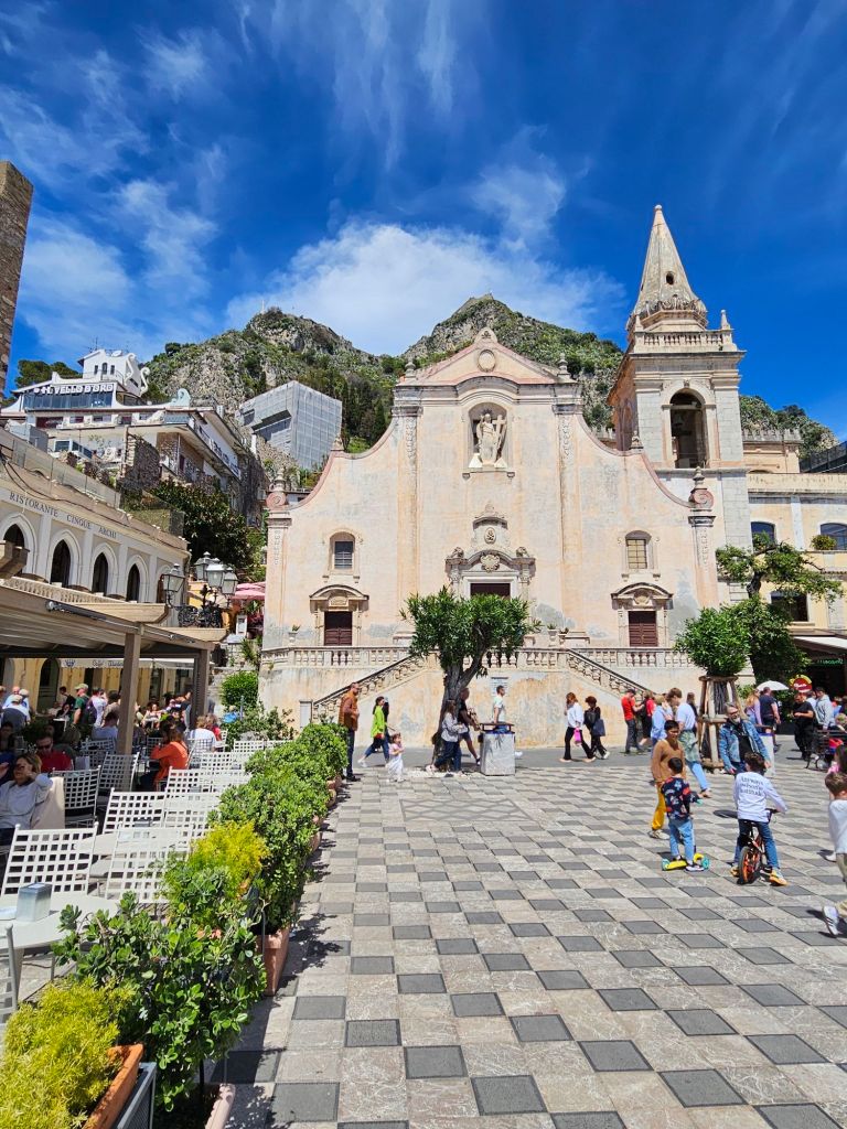 Als wir nach rund zwei Stunden den Parkplatz wieder verließen, auf dem wir als erster Bus geparkt hatten, war es dort deutlich voller. Wir waren nun auf dem Weg zum letzten Ziel dieser Reise, Taormina https://de.wikipedia.org/wiki/Taormina.