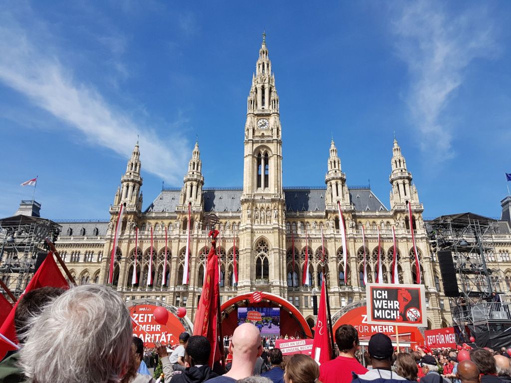 Wer aber etwas Besonderes erleben will, der sollte überlegen, zum 1.Mai eine friedliche und entspannte Demonstration zu erleben – morgens eine große freiwillige Zusammenkunft nach einem Sternmarsch aus allen 23 Bezirken vor dem Rathaus, nachmittags ein Familienfest im Prater.