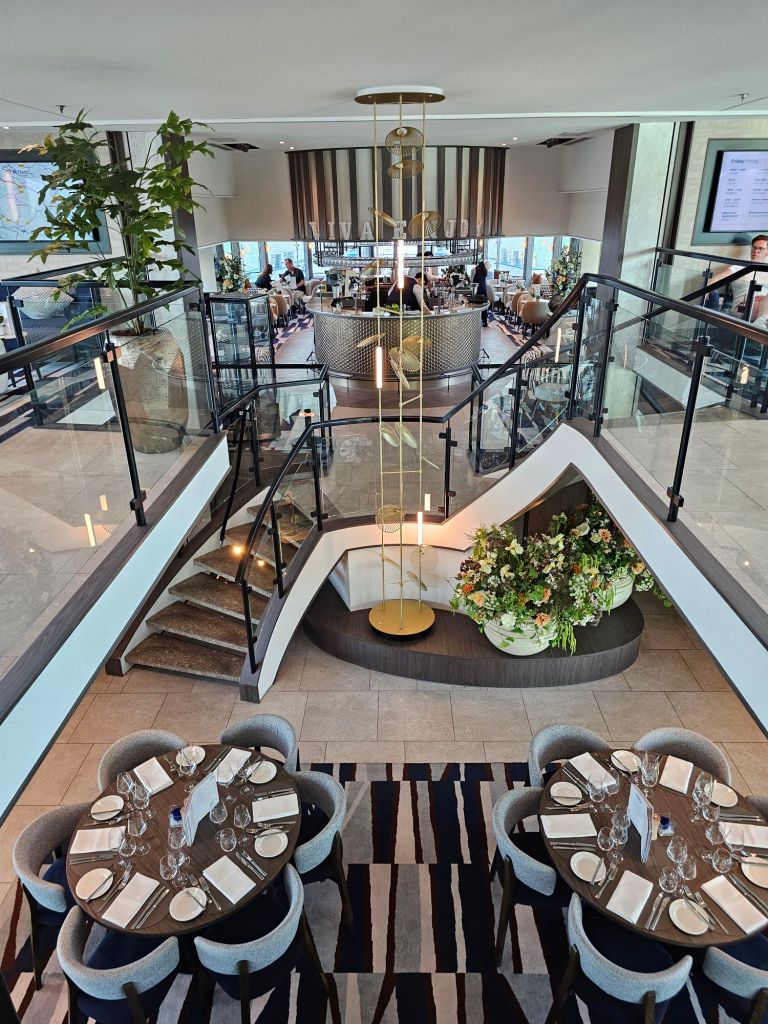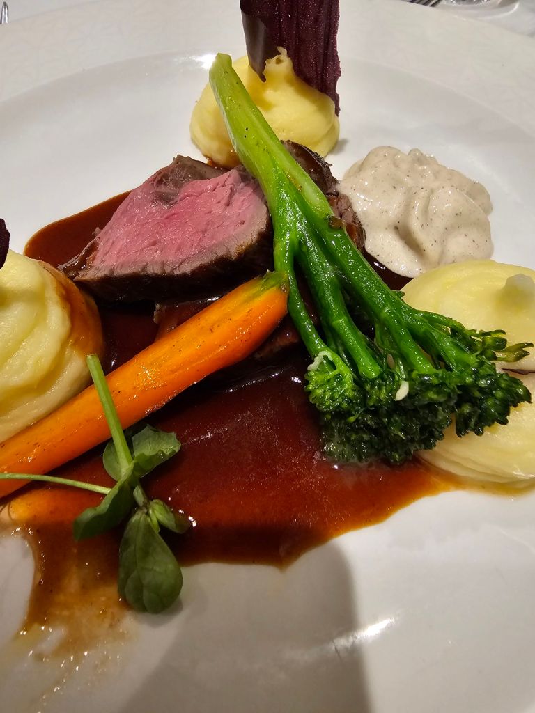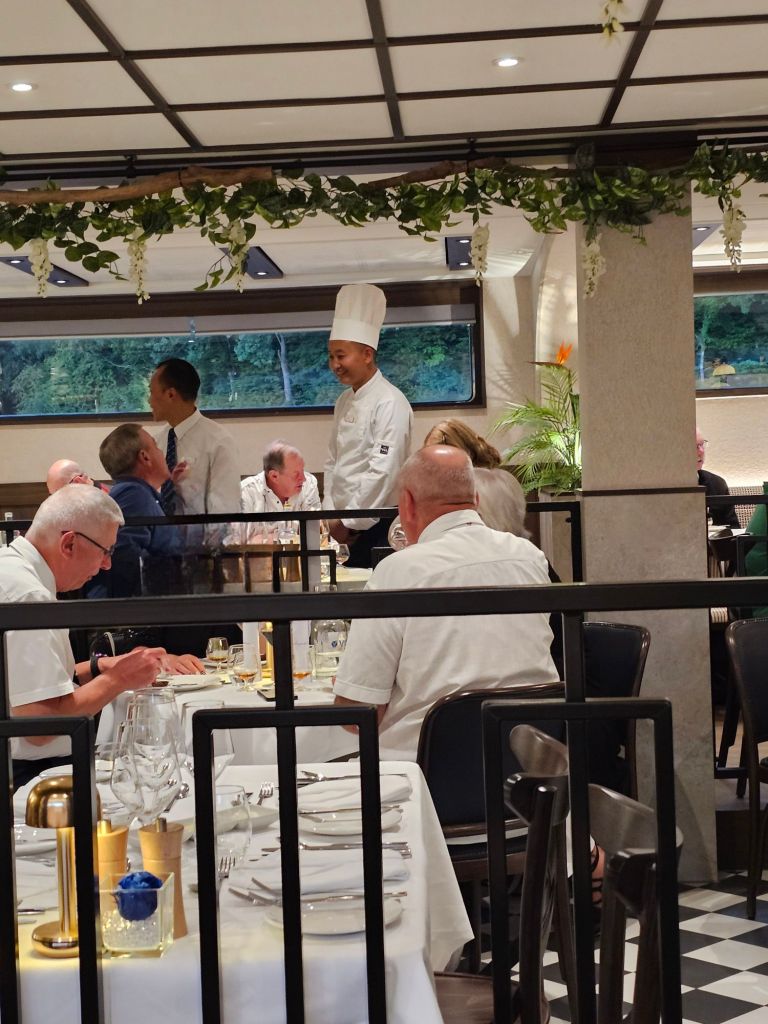 Auch wenn ich sonst gerne abends im Riverside Restaurant mit freier Platzwahl gegessen habe, wo wenige kleine Tische angeboten werden – und immer einen guten Platz gefunden habe – bin ich für das Gala-Dinner lieber in das Moments Restaurant gewechselt, wo mehr Zweier-Tische vorhanden sind. Es war deutlich leerer als das Riverside und damit viel ruhiger und entspannter.