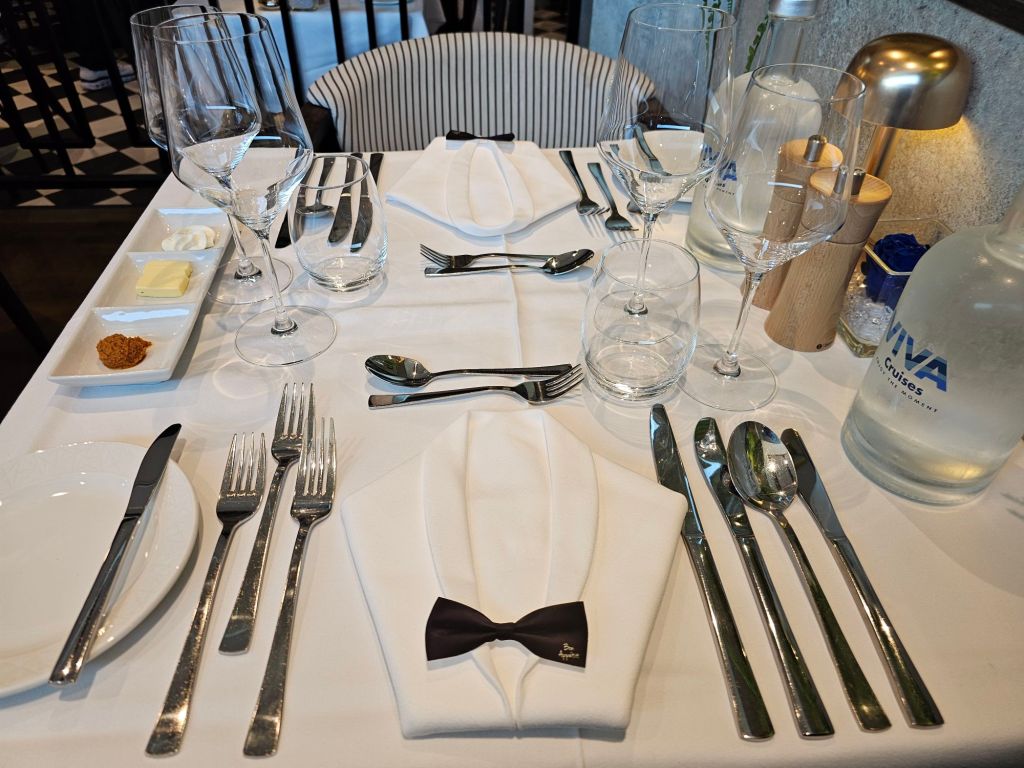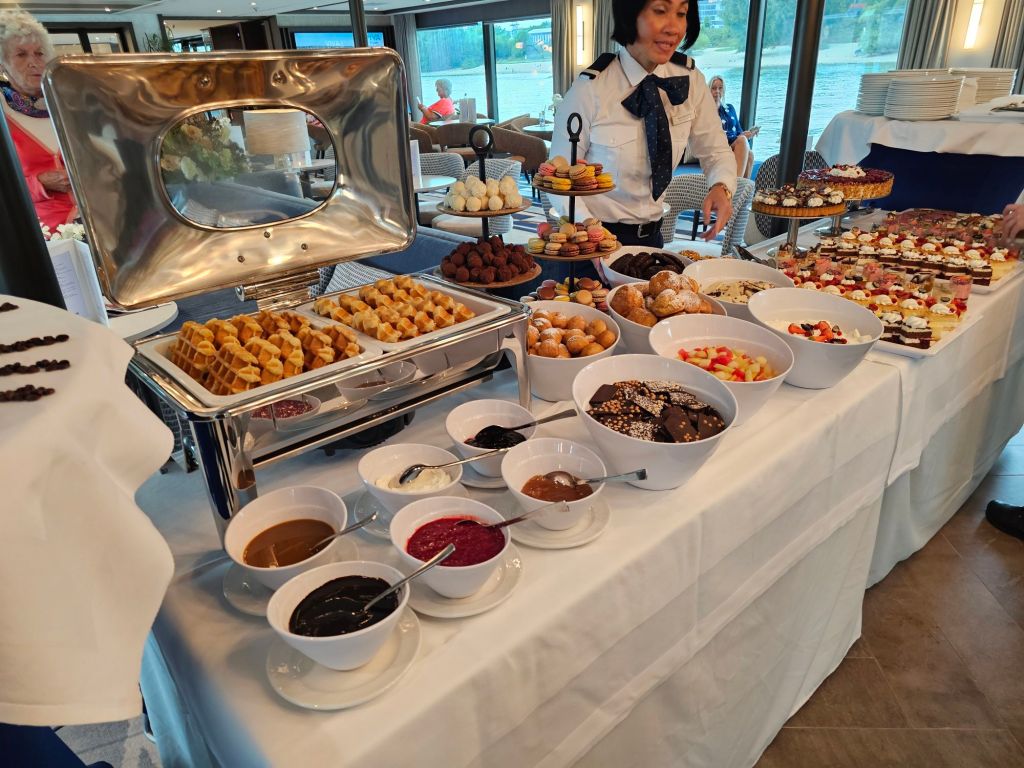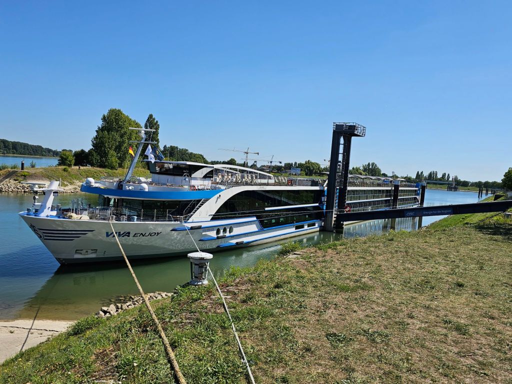 Die Reise ist auch ein Erkunden des neuen Schiffes, weil ich für mich festgestellt habe, dass ich das VIVA-Konzept mit dem All-Inclusive-Konzept und auch die Art, wie Restaurants und Hotelbetrieb gestaltet werden, schätze, aber lieber die Neubauten nutze als die alten Schiffe, mit denen diese Flussreederei, hinter der die Schweizer Reederei Scylla AG steckt, seine Geschäftstätigkeit gestartet hat.