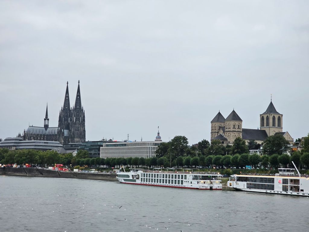 Auf dem Weg nach Koblenz passiert das Schiff auf dieser Reise Köln – mit schönen Ausblicken auf den Kölner Dom und die Kranhäuser – beste Blicke vom Oberdeck bei leider bedecktem Himmel. Und während ich sonst von der Eisenbahnbrücke auf der Fahrt vom oder zum Kölner Hauptbahnhof auf den Rhein schaue, hat man so einen schönen Blick auf den Dom von einer anderen Seite als sonst.