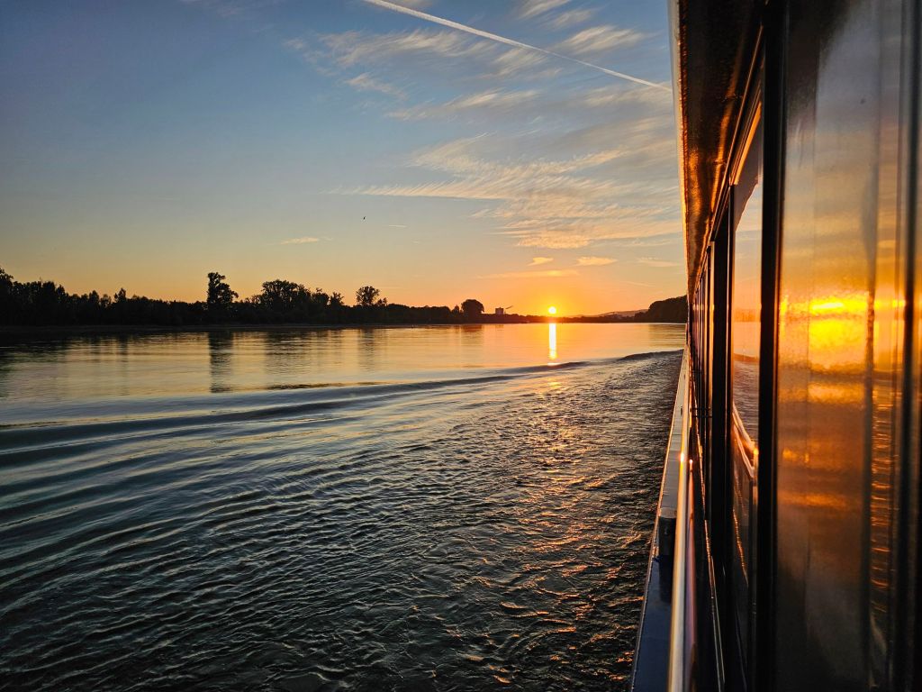 Da am Tag sechs das Ziel Speyer erst am Mittag erreicht wird, ist der Montagmorgen ein entspannter Start in den Tag mit der Möglichkeit, beim Morgenkaffee im Bett von dort aus das Aufgehen der Sonne zu beobachten.