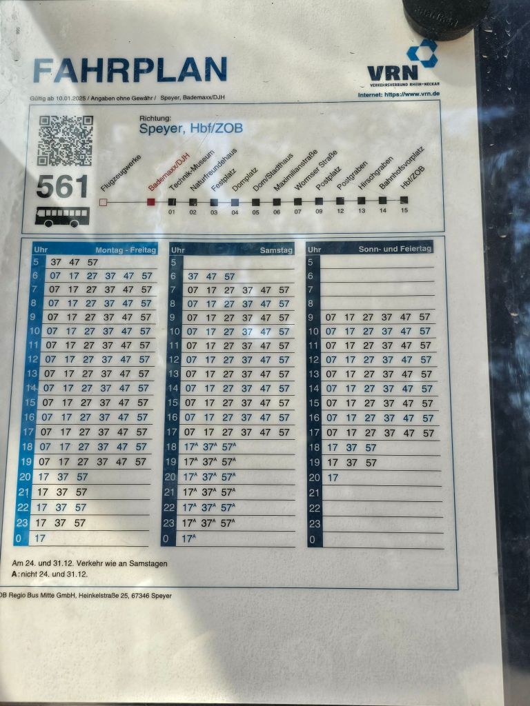 7. Der Cruise-Direktor ist bemüht, aber vielleicht wäre es für einen Teil der Gäste – gerade die internationalen – hilfreich gewesen, für Speyer nicht nur den Stadtplan auszulegen, sondern auch die Info zu geben, dass man statt eines längeren Fussweges in die Altstadt und zum Dom auch einfach den alle 10 Minuten fahrenden Bus 561 nehmen kann und in vier Minuten am Dom ist. Vielleicht noch mit der Info, was das Ticket kostet, wenn man kein Deutschlandticket hat