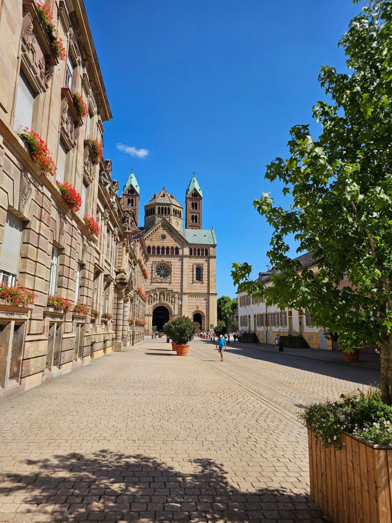 In Speyer kamen wir zur Mittagszeit an. Statt eines knapp 20 minütigen Fussweges zum Dom und der Altstadt kommt man vom Liegeplatz des Schiffes – direkt neben der Jugendherberge – auch ganz wunderbar mit einem Bus dorthin. Man läuft dann durch ein schmuckes Städtchen mit einer vielfältigen Geschichte – und kann auch einfach nur bummeln.