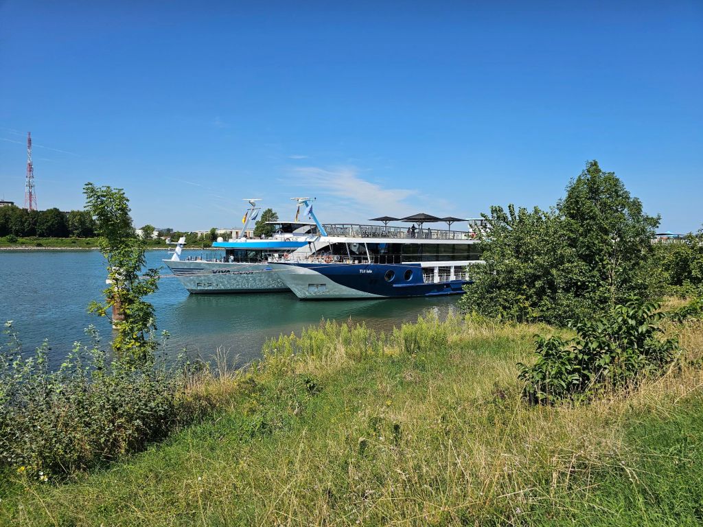 Vom Gleis aus sind es rund 700 m bis zum Liegeplatz der VIVA Enjoy – mit der ich in sieben Tagen den gesamten Rhein hinunter bis nach Basel fahren werde.