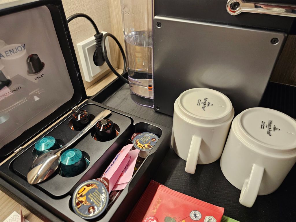 Meine Kabinenstewards habe ich nie persönlich gesehen, aber sie haben schnell und effizient ihren Job getan – wenn ich vom Frühstück zurückkam, war die Kabine schon aufgeräumt und auch der abendliche Turndown-Service war schnell und effizient. Besonders gefallen hat mir, dass sie das Handling der Nespresso-Maschine erleichtert haben und ich mich weder um das Nachfüllen von Wasser noch das Entsorgen der gebrauchten Kapseln kümmern musste.