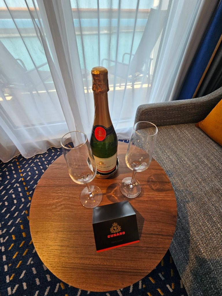 1. Manche meiner Wünsche an Cunard bleiben gleich – es fehlt mir bei jeder Reise eine leichte Decke in der Kabine (warum können Virgin Voyages, Mein Schiff oder VIVA Cruises das und Cunard nicht ?). Ich ärgere mich auf jeder Reise, dass mich ohne eine Alternative eine Flasche Sekt begrüßt, von der ich nichts habe und auch einen Schuhlöffel in der Kabine fände ich nett (den habe ich aber auch selbst dabei). Warum es als einziges deutschsprachiges Fernsehprogramm RTL gibt, während es auch BBC gibt, bleibt mir weiterhin unverständlich. Der Haartrockner ist weiter eine Plage, die man nur im Notfall nutzt. Das es bei Cunard (aus meiner Sicht) keinen trinkbaren  Kaffee gibt, kann ich gut durch das Trinken von Tee kompensieren.