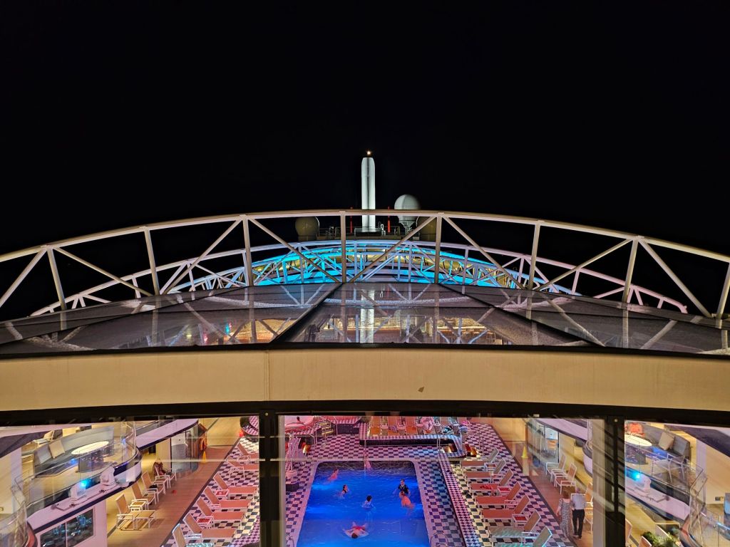Abendlicher Blick auf den Pavillon auf Deck 9 und 10