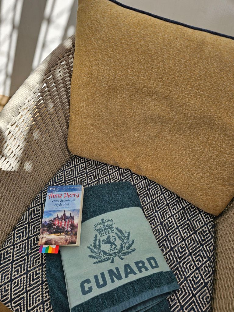 Auf Cunard-Reisen lese ich gerne „britisch“. Dieses Mal auch mit einem für mich neuen Anne Perry, der 1899 spielt und in dem Queen Victoria am Ende ihrer Regierungszeit eine wichtige Rolle spielt.