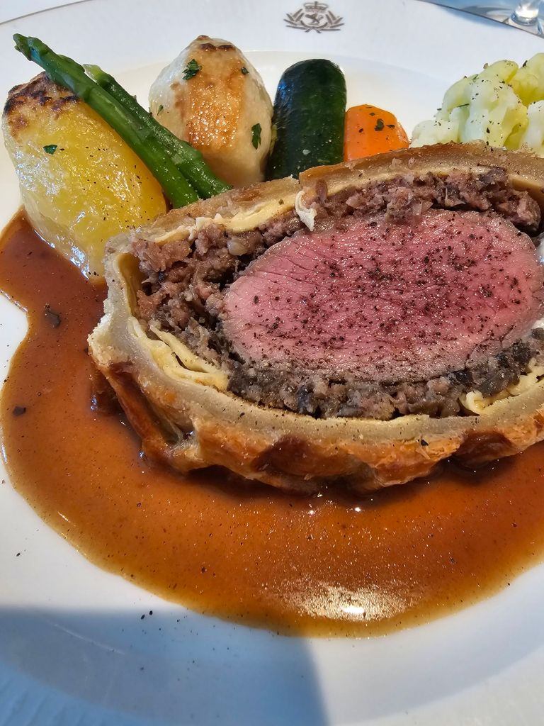 4. Im Britannia-Club werden dieselben Gerichte wie im Britannia-Restaurant, ergänzt um ein paar ständig verfügbare Angebote, die es dort nicht gibt, angeboten. Dieses Mal war die Küche eigentlich immer gut, es war abwechslungsreich, die pochierten Eier bei den Eggs Benedikt hatten immer ein noch flüssiges Eigelb (bei meinen letzten Reisen gab es immer einige mit festem Eigelb) und das Filet Wellington war dieses Mal besonders gut, das Beste, das ich bisher an Bord hatte (und ich habe es eigentlich immer einmal bei jeder Reise).