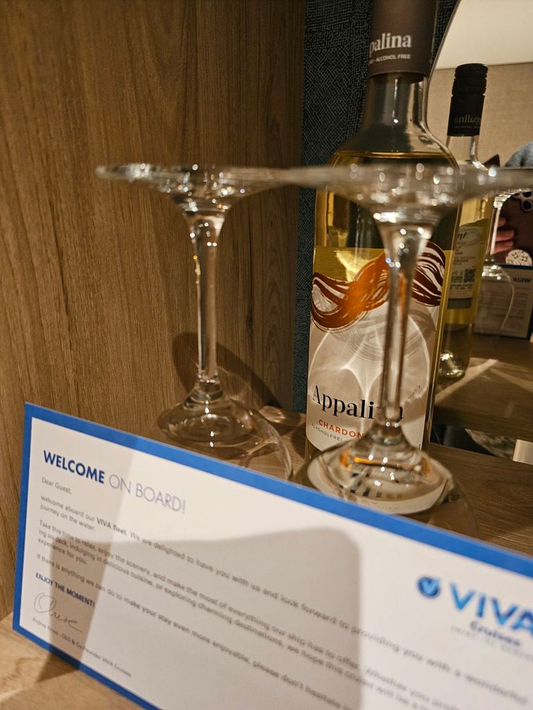 2. Oft ärgere ich mich, dass mir auf meinen Reisen zur Begrüssung eine Flasche Sekt – ohne Alternative – angeboten wird. Bei meinem Eintreffen auf meiner Kabine fand ich nicht nur einen zauberhaften Willkommensgruß meines Reisebüros in Form eines kleinen Bordguthabens vor, sondern statt der „üblichen“ Flasche Prosecco zur Begrüßung eine Flasche alkoholfreien Chardonnay vor. Das gefällt mir sehr. Allerdings ist die Qualität bzw. der Geschmack von alkoholfreiem Wein noch nicht auf dem alkoholfreien Biers. Aber da bewegt sich gerade sehr viel in eine sehr positive Richtung.