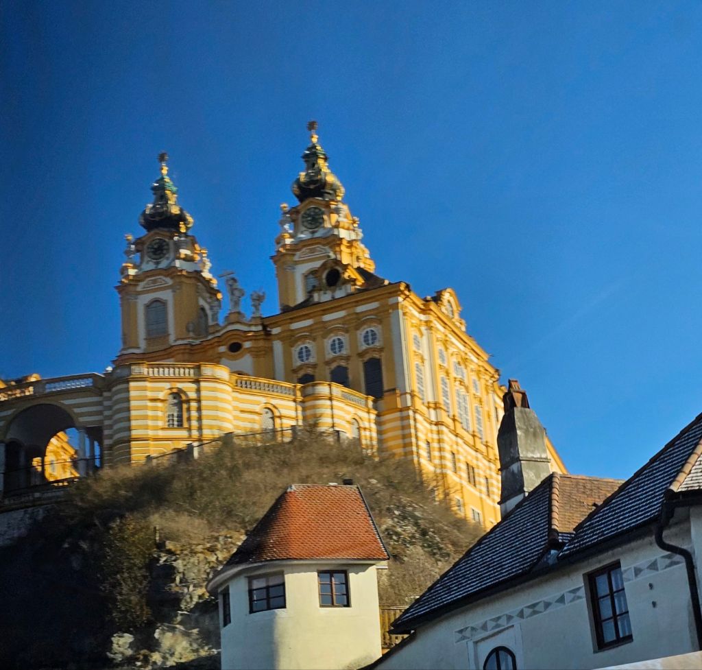 So startete unsere Reise auf der Donau in Linz. Am nächsten Morgen erreichten wir wie geplant den ersten Halt: Melk. Man hätte in dieser touristisch etwas ruhigeren Zeit natürlich das Stift Melk besuchen können, dass mit einem kurzen Fussweg von der Anlegestelle erreichbar ist.