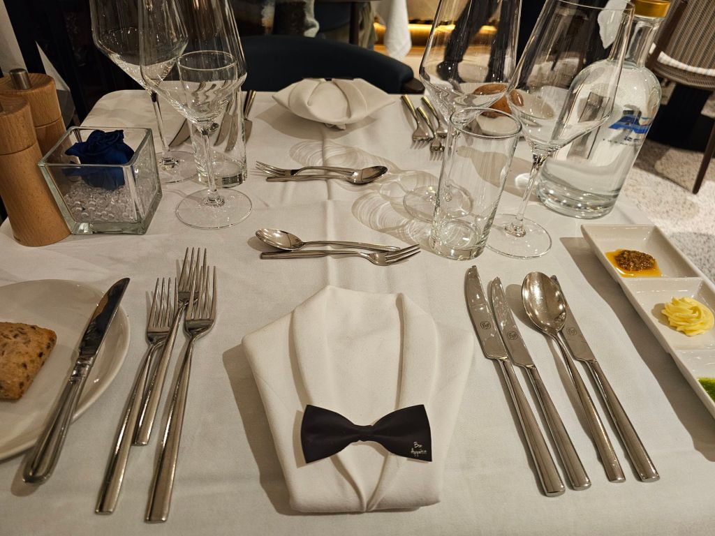 3. Manchmal möchte man auf Reisen – aus welchen Gründen auch immer – alleine oder zu zweit sitzen. Dazu ist im Riverside Restaurant – dem mit der schönen Aussicht – kein einziger 2-er Tisch vorgesehen. Immerhin sind im Moments Restaurant einige 2-er Tisch vorhanden; deshalb gehe ich beim Gala-Dinner lieber dorthin.