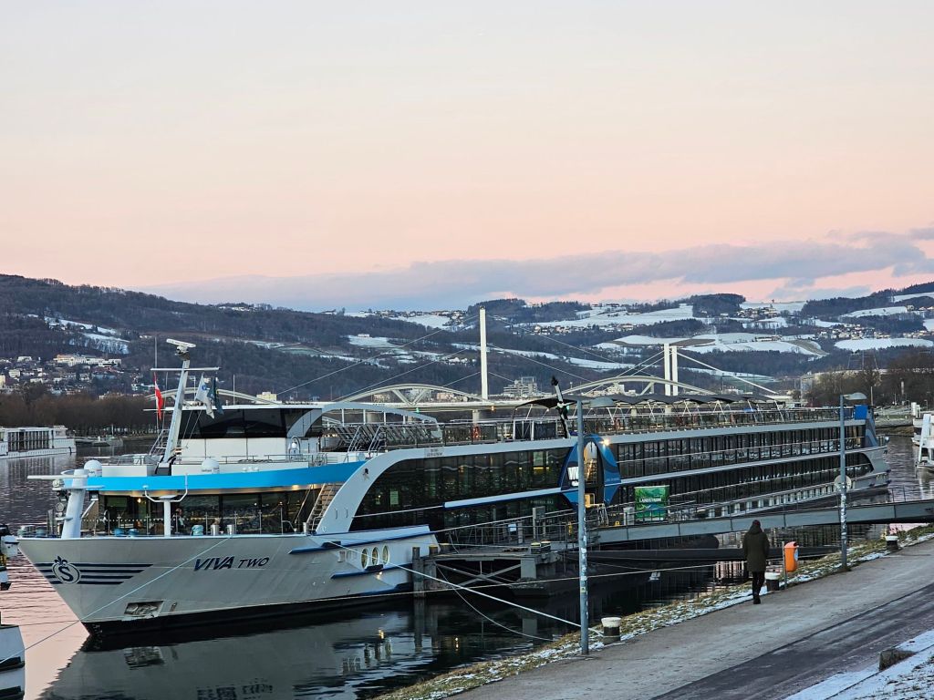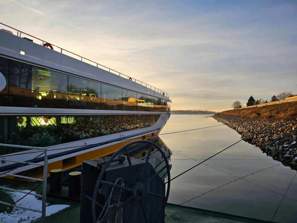 Am Sonntag Abend hatte ich nur noch das Bedürfnis etwas zu essen – was ich nach kurzem Fußweg im Ratskeller https://www.ratskeller-passau.de/ gut getan habe – und nach etwas Ruhe. Am Sonntagnachmittag hat mich – und das Reisebüro meines Vertrauens, dass gleich checkte, ob mich die Mail erreicht hat – die Information über die erste Änderung der Route erreicht: aufgrund eines Schadens an der Schleuse Jochenstein https://www.wsa-donau-mdk.wsv.de/Webs/WSA/Donau-MDK/DE/SharedDocs/Pressemitteilungen/2025_Pressemitteilungen/PM_Jochenstein_Dez2025.html?nn=955602 würde die Einschiffung am Montag auf die VIVA Two erst in Linz stattfinden, wohin es einen kostenlosen Bustransfer um 15 Uhr ab Passau Hauptbahnhof gäbe.