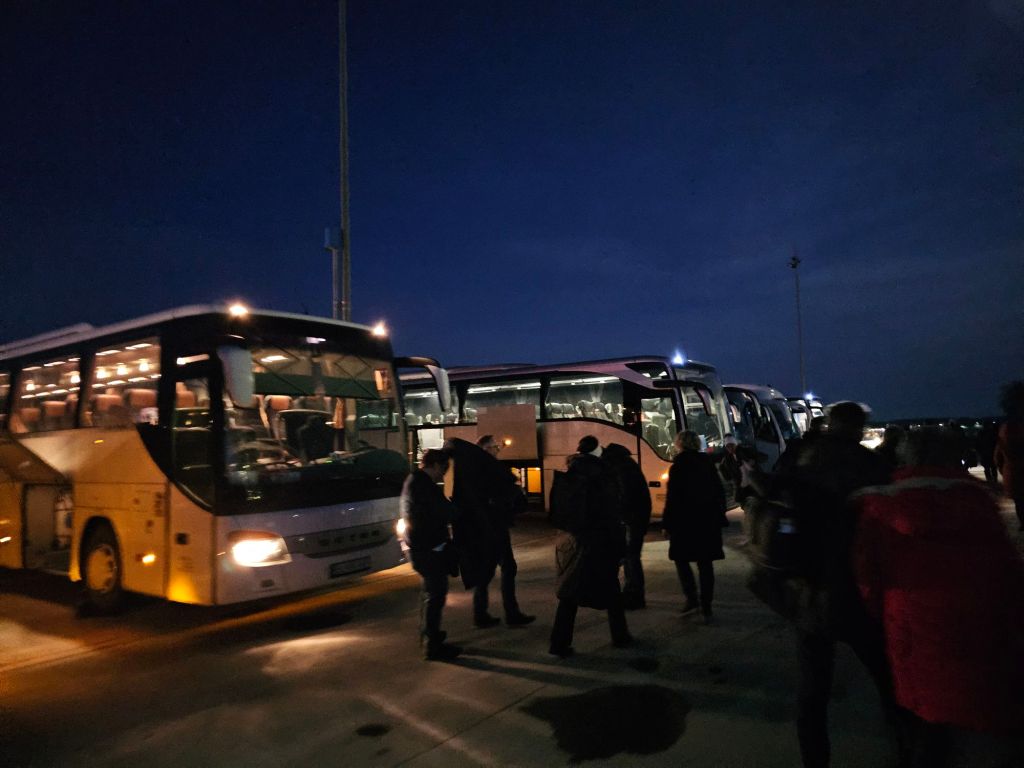 Die nickoVision lief Silvester auf ihrem Weg nach Komarom auf Grund und konnte selbstständig nicht wieder fahrtüchtig werden. Da die VIVA Two baugleich ist, wurde sie zur Rettungsaktion durch die Behörden ausgesucht – wofür deren Gäste (also wir) das Schiff um zwölf Uhr verlassen musste. Dank des besonderen Engagement unseres Kreuzfahrtdirektors – und des Selbstverständnisses, dass man sich in Notfällen auf dem Wasser einfach hilft – hatte uns unser Cruisedirektor einen Aufenthalt in der warmen Lounge der gegenüber liegenden VISTA Star organisiert, während die Gäste der VISTA Star einen Ausflug machten. Da die ungarischen Behörden sehr viel länger als ursprünglich zugesagt brauchten, um die versprochenen Busse bereit zu stellen, gab es nicht – wie angedacht – einen kleinen Besuch in Györ, sondern wir fuhren nach gut drei Stunden (die wir warm, halbwegs bequem und mit einer Toilette in der Nähe auf der VISTA Star verbracht hatten) mit den Bussen doch direkt zu unserem Schiff, das nun in Venek lag.