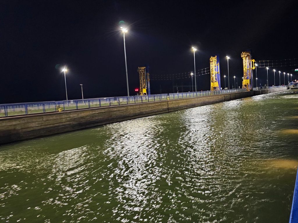 Durch die verspätete Abfahrt haben wir die Schleuse bei Gabcikovo https://de.wikipedia.org/wiki/Kraftwerk_Gab%C4%8D%C3%ADkovo auf unserem Weg nach Bratislava doch im Dunkeln passiert, aber ab hier lief die weitere Reise ohne besondere Vorkommnisse.