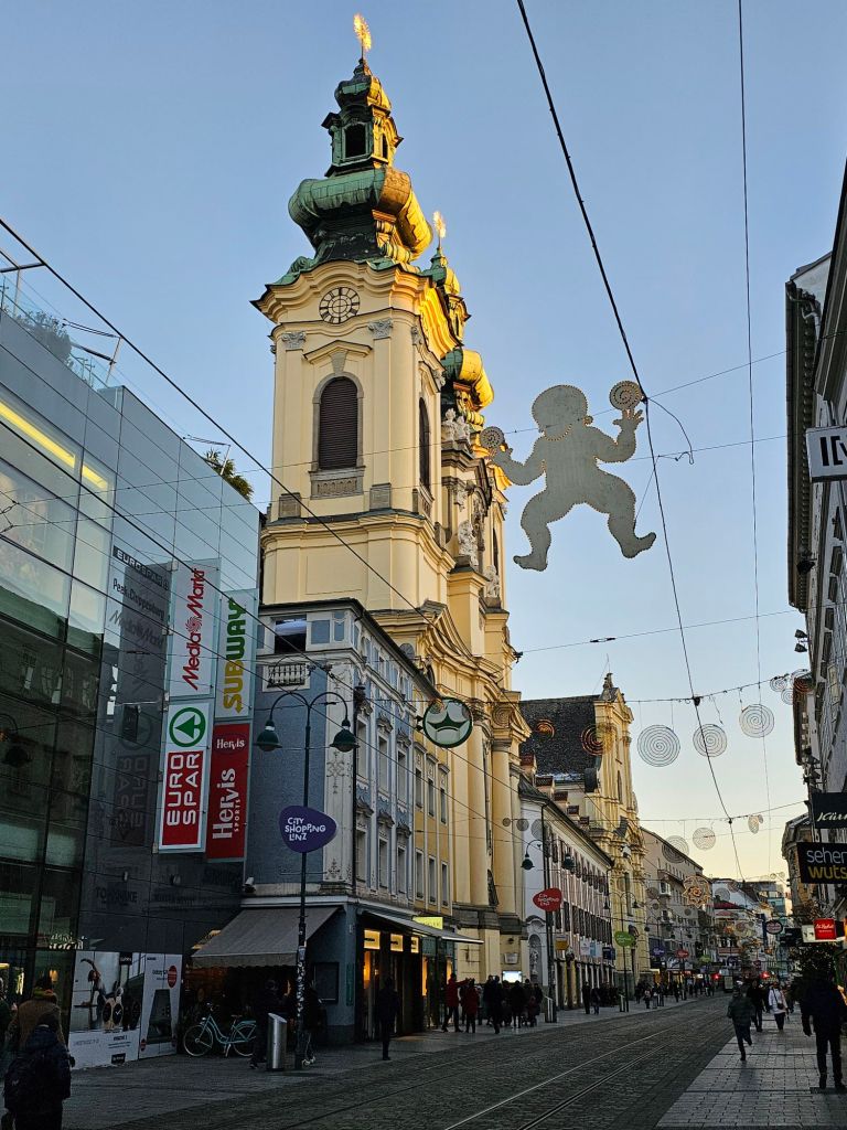Leider hatte das Linzer Puppentheater noch nicht den Spielbetrieb im neuen Jahr wieder aufgenommen. Aber ansonsten ist das auch eine Linzer Kulturinstitution. https://www.puppentheater.at/news/aktuelles/55-jahre-linzer-puppentheater. Und leider hat mein Lieblings-Fastfood-Anbieter in Österreich, https://www.leberkaspepi.at/, wo es die beste Leberkas-Semmel gibt, zwar ganz in der Nähe vom Anleger, in der Rathausgasse, ein Geschäft, aber das hat leider Sonntags geschlossen. Und auch ein „Must-Do“ für Kinder jeden Alters in Oberösterreich, die Grottenbahn, hatte Winterpause, aber bei klarem Wetter und Sonnenschein war auch bei Eis und Schnee der Pöstlingsberg ein gutes Ziel für den Sonntagnachmittag.