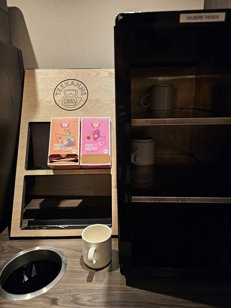 5. Das Essen ist eigentlich gut. Der Flammkuchen belm Lunch im Bistro ist allerdings arg trocken – statt Champignons täte ihm etwas Creme fraiche gut, damit es wirklich gut schmeckt. Auch die Möglichkeit, sich selbst freizugänglich einen Kaffee oder Tee aus der Maschine zu holen, ist sehr angenehm. Allerdings waren gelegentlich kaum noch saubere Tassen verfügbar.