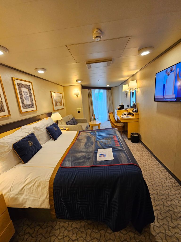 Da ich die Queen Victoria schon kenne, habe ich mich bei einem kurzen Rundgang nur ihrer Schönheit und Eleganz vergewissert, aber erstmal meinen Koffer ausgepackt und mich in der Kabine eingerichtet.