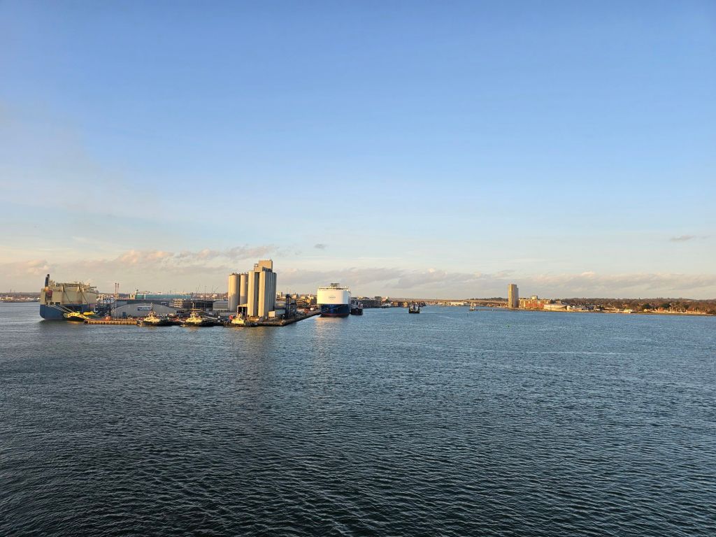 Das Schiff wurde eine halbe Stunde später als geplant freigegeben. Ich hatte bereits mit der LH-App für meinen neuen Flug eingecheckt und kannte daher die wichtigste Zeit dieses Tages: 16.45 Uhr Gepäckabgabefrist in LHR Terminal 2. Das sollte eigentlich zu schaffen sein. Um 13.38 Uhr wurde meine Gruppe dann endlich aufgerufen, ich verließ das Schiff und wollte meinen Koffer auf dem Weg zum Shuttle einsammeln. Nur da war kein Koffer. Gerade bei den frühen Gepäckgruppen fehlten zahlreiche Koffer. Ich habe mit Hilfe eines freundlichen Herrn des Gepäckdienstleisters letztlich über eine Stunde nach meinem Koffer gesucht, bis ganz zum Schluss plötzlich noch ein Wagen mit „roten“ Koffern, darunter auch endlich meiner, auftauchte. Ich hatte immer auch Richtung der Cunard-Menschen im Gepäckterminal kommunziert, das man mit aller Kraft nach meinem Koffer sucht. Als ich dann endlich mit Koffer um 14.45 Uhr etwas gestresst vor dem Mayflower-Terminal stand, musste ich erstmal jemanden von Cunard suchen, um mir dann als Erstes unerfreulicherweise erklären zu lassen, dass der Shuttle nach LHR nicht mehr auf mich warten konnte und ich – da ich ja nicht pünktlich war – jetzt selbst sehen müsse, wie ich nach LHR käme. Es gab neben mir noch einen zweiten Passagier – ein paar Kabinen weiter auf meinem Deck – dessen Koffer im selben Gepäckwagen wie meiner war und der auch nach LHR musste. Nach einigem Hin und Her gab es aber um drei Uhr doch eine Lösung: man organisiert uns ein Taxi, wir verauslagen das und Cunard erstattet das im Nachgang. Zu diesem Zeitpunkt gab es eine lange Schlange am Taxistand und keine freien Taxis. Als wir schliesslich in einem bestellten Taxi, an der Schlange vorbei, sassen, war es 15.15 Uhr und Google Maps schätzte die Ankunftszeit auf 16.47 Uhr. Zum Glück war der Taxifahrer pfiffig, fuhr die kürzeste Strecke und mein Mitreisender übernahm die Bezahlung, so dass ich um 16.40 Uhr – gerade mal 5 Minuten vor Ablauf der Frist – an der Gepäckaufgabe stand. Auch beim automatischen Baggage DropOff waren freundliche Menschen, die mir geholfen haben, ich bin gut durch die Security gekommen und war mit ziemlich viel Adrenalin im Blut gerade pünktlich zum Boarding am Gate, ohne irgendwelches Shopping und mit nichts gegessen seit dem Frühstück.