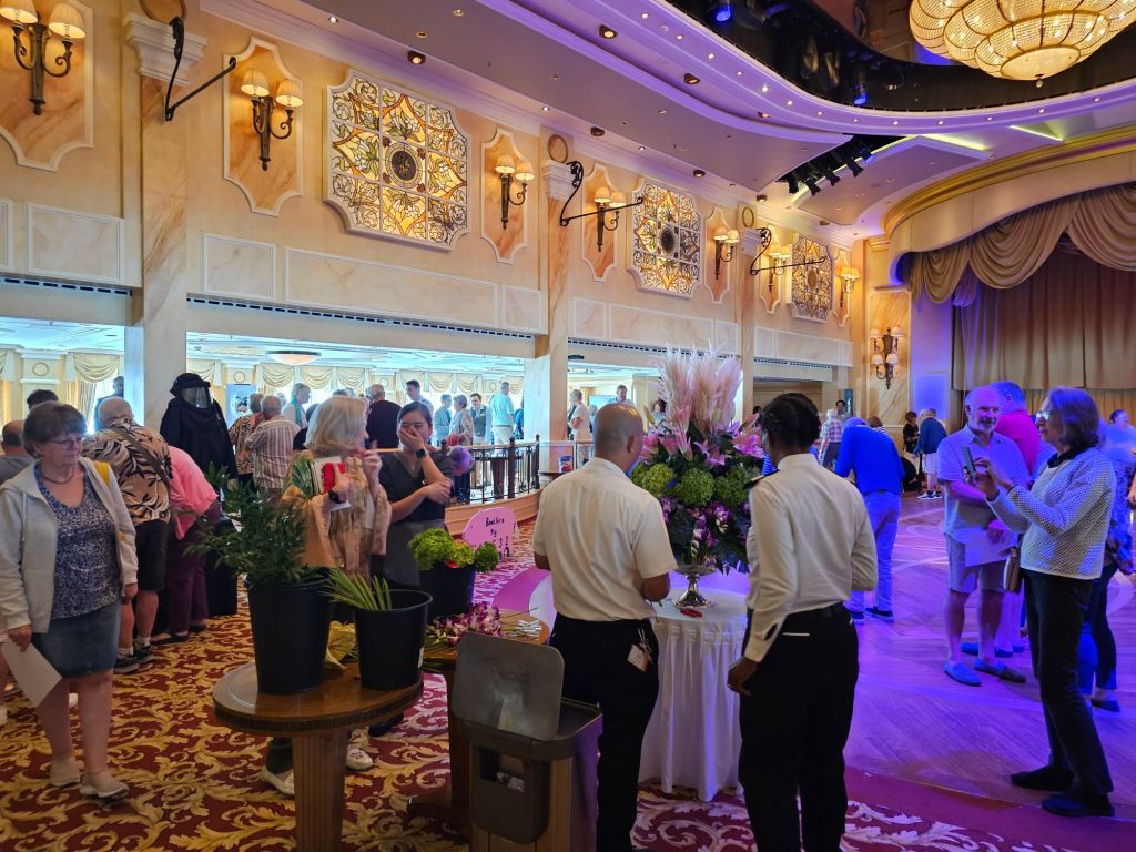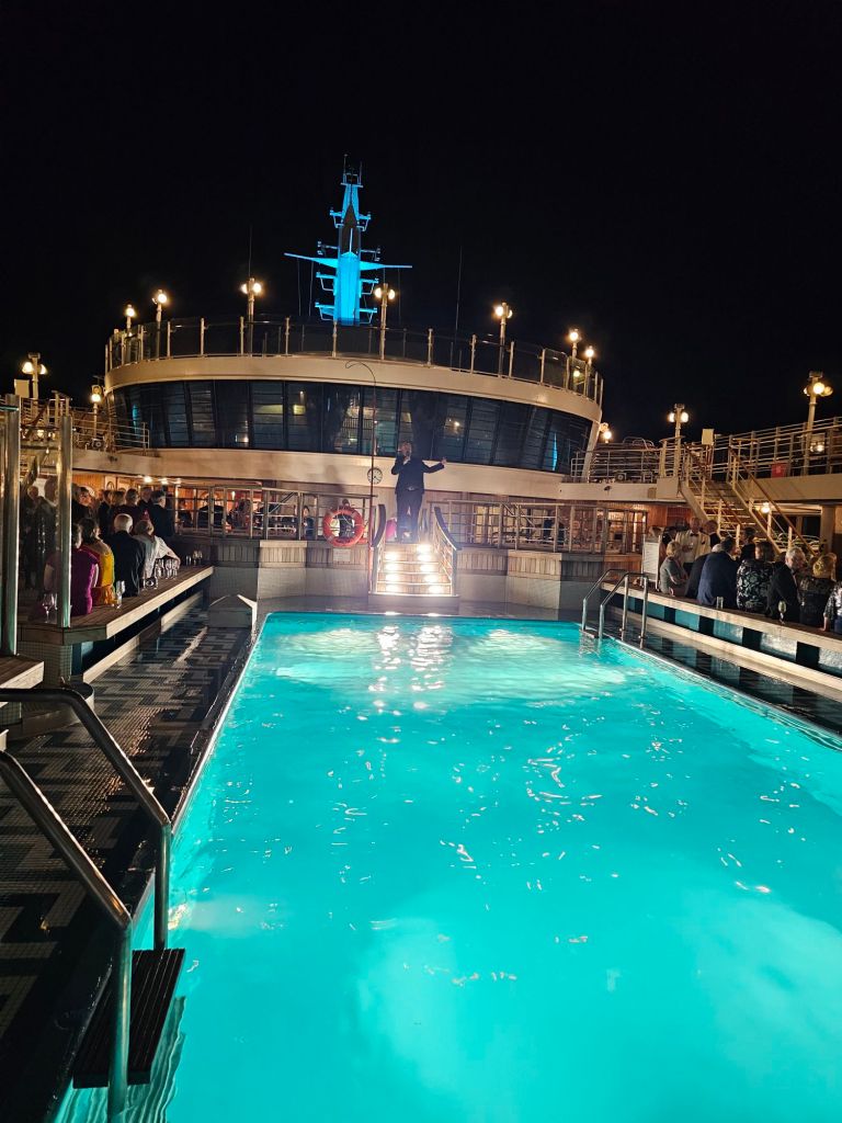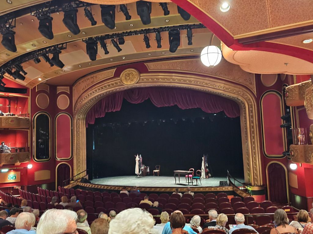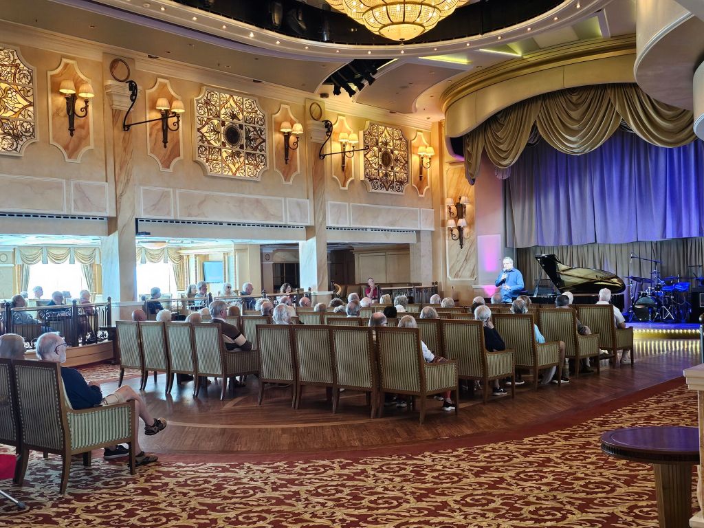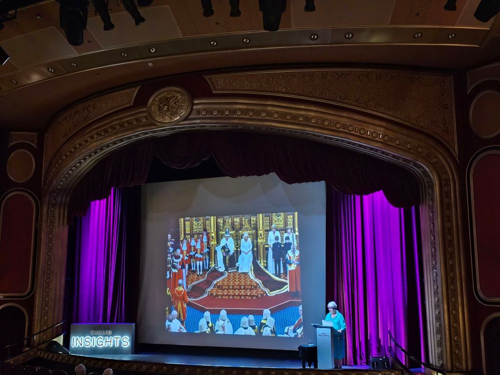 Meine persönlichen Lieblingstermine an Seetagen sind die Insights. Auf der Hinfahrt habe ich z.B. einiges über Wasserbau auf Madeira und Brückenbau, aber auch Astronomie und Psychologie gelernt. Meine persönliche Lieblings-Speaker gab es aber auf der Rückfahrt: „The Godfather of Royal Reporting“ Robert Jobson und Vivian Widgery, die vor ihrem Ruhestand bei der Hansard Parlamentsdokumentation im House of Commons gearbeitet hat und in ihren Talks über verschiedene Facetten des britischen Parlamentarismus gesprochen hat. Und auch die Talks von Giles Ramsay über (britische) Theatergeschichte waren interessant.