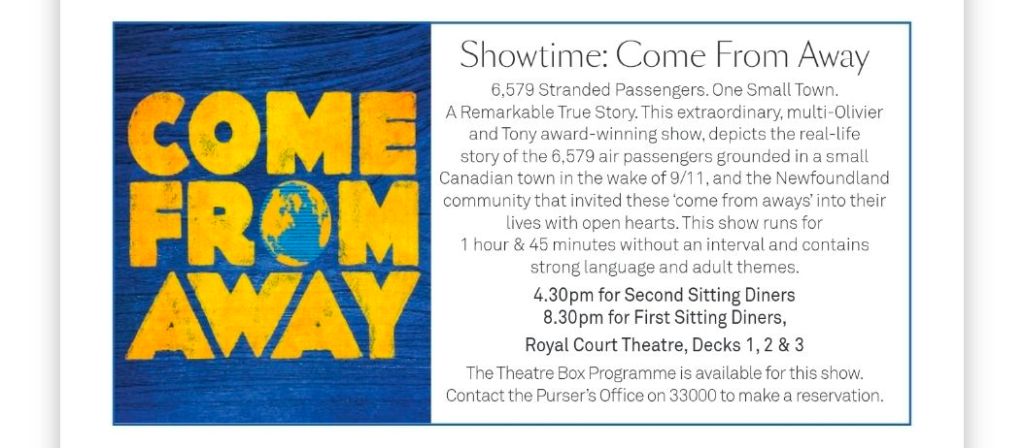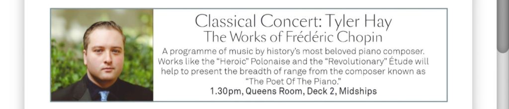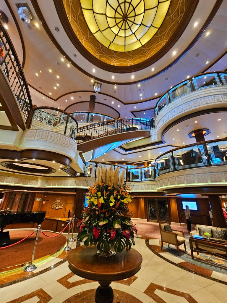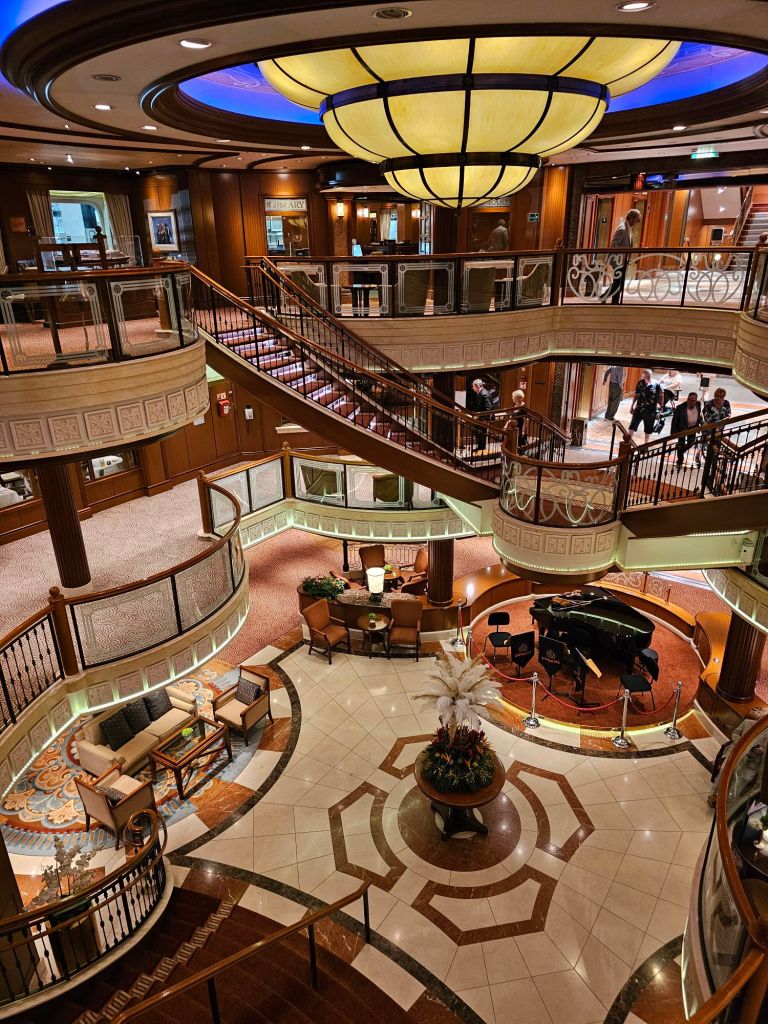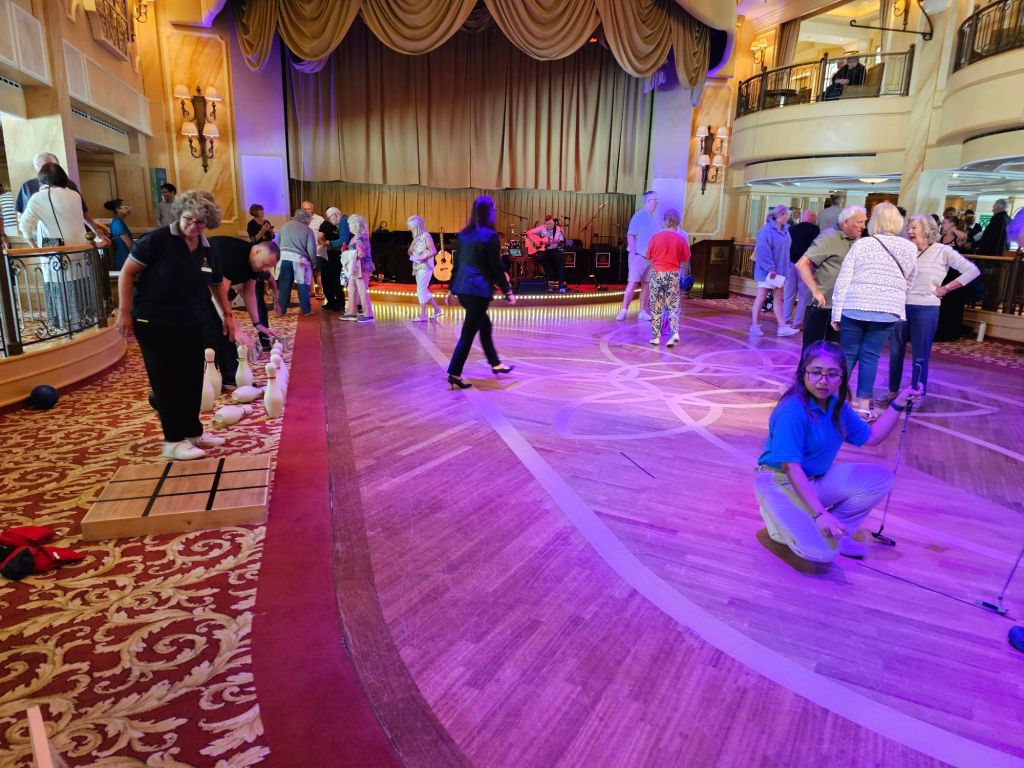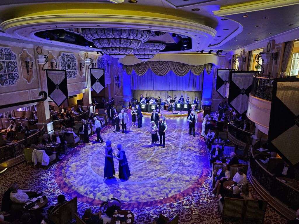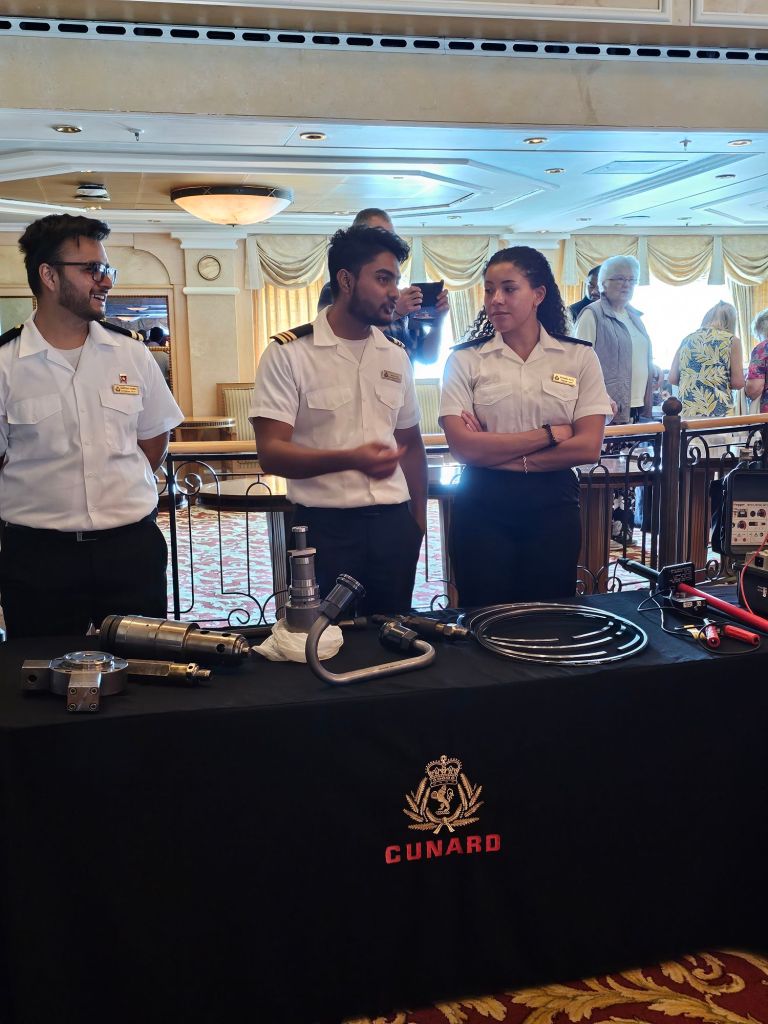 Meine persönlichen Lieblingstermine an Seetagen sind die Insights. Auf der Hinfahrt habe ich z.B. einiges über Wasserbau auf Madeira und Brückenbau, aber auch Astronomie und Psychologie gelernt. Meine persönliche Lieblings-Speaker gab es aber auf der Rückfahrt: „The Godfather of Royal Reporting“ Robert Jobson und Vivian Widgery, die vor ihrem Ruhestand bei der Hansard Parlamentsdokumentation im House of Commons gearbeitet hat und in ihren Talks über verschiedene Facetten des britischen Parlamentarismus gesprochen hat. Und auch die Talks von Giles Ramsay über (britische) Theatergeschichte waren interessant.