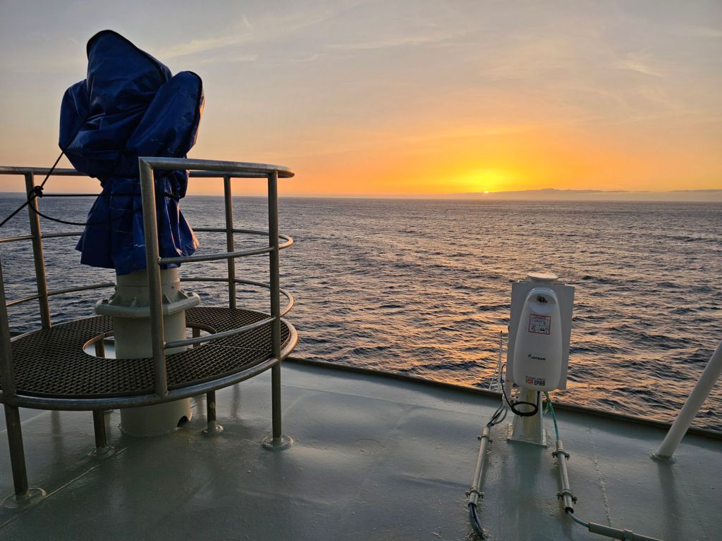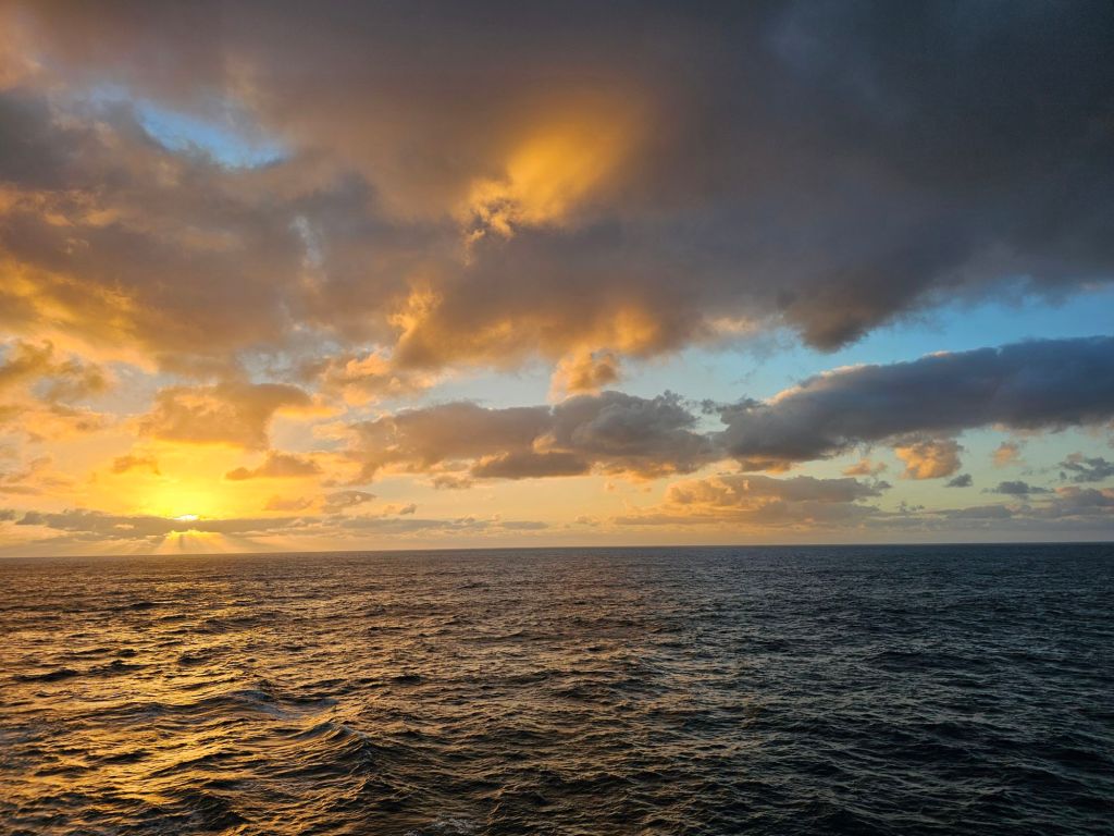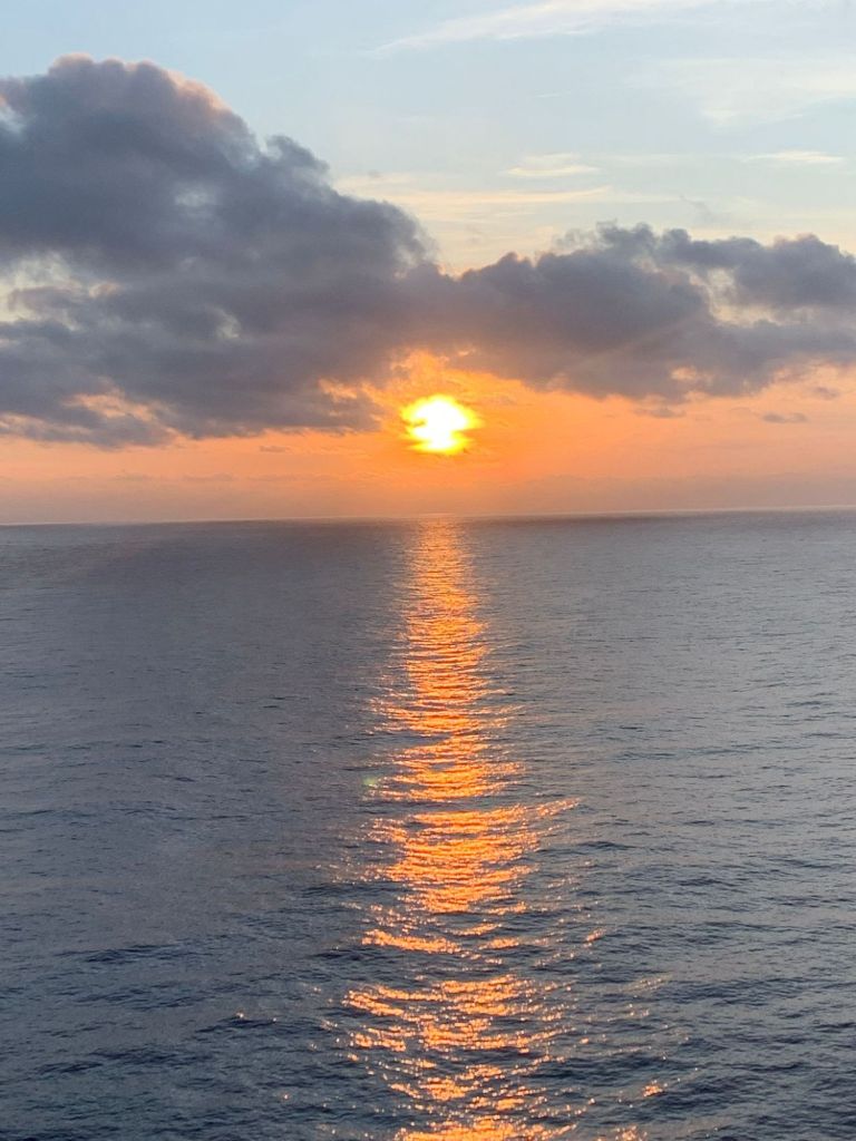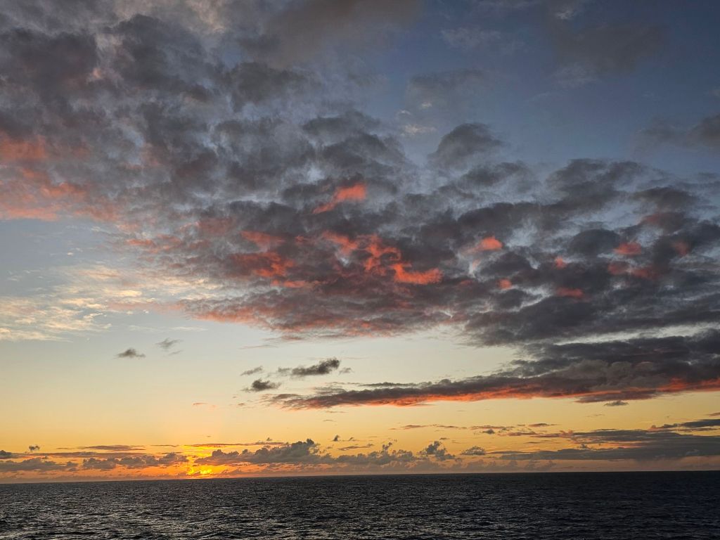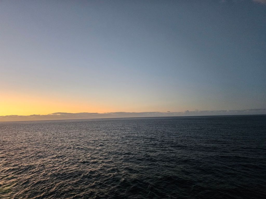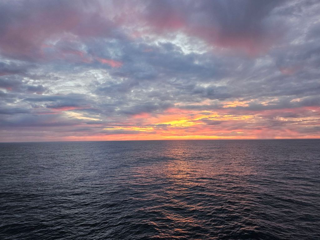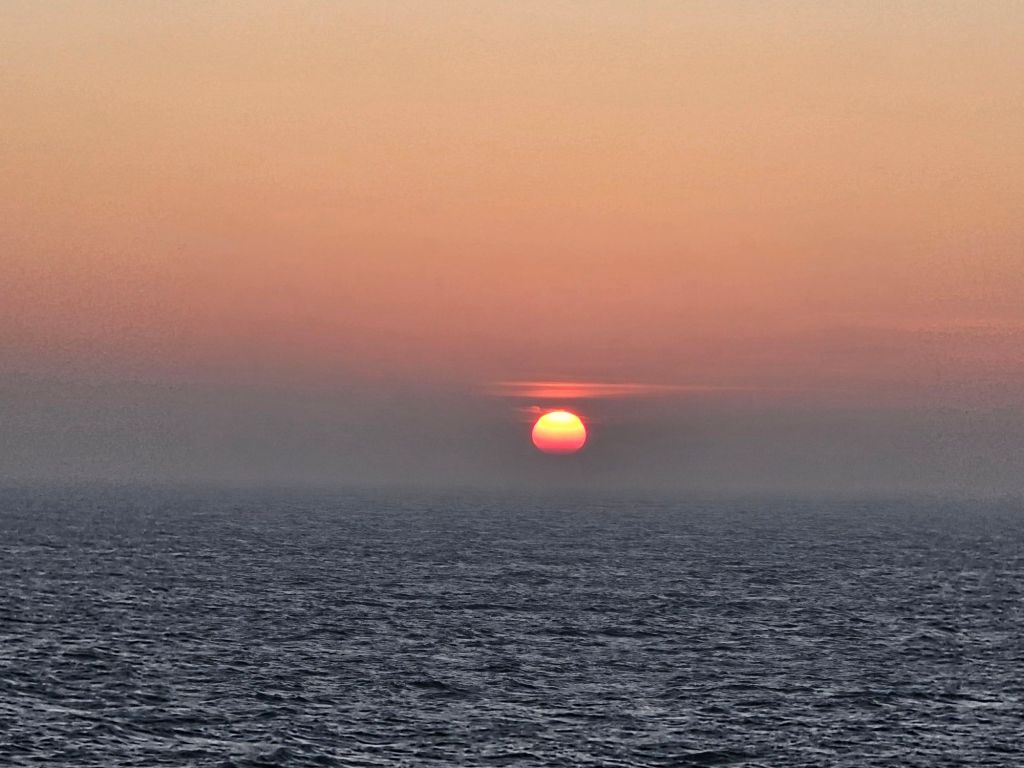 Der Sonntag startete dieses Mal anders als gewohnt. Wenn das Schiff sonst morgens anlegt, dann ist das morgens gegen 7.00 Uhr. Es gibt ab 6.00 Uhr Frühstück und die Kabine muss bis spätestens 9.00 Uhr geräumt sein. Ich war trotzdem früh wach und habe einen letzten schönen Sonnenaufgang erlebt.