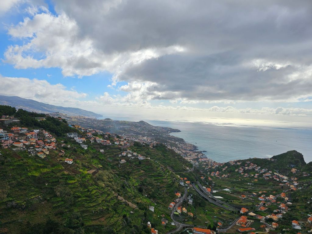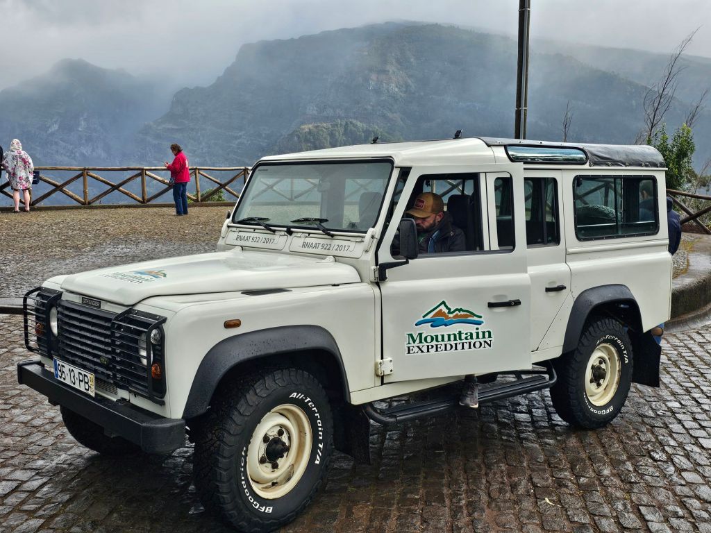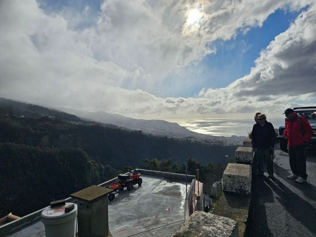 Laut Beschreibung sollte mich ein brauner Jeep zu meinem Ausflug „Skywalk, Sights and Sips of Madeira“ abholen – der suchte dann aber (vergeblich) einen „Gary“- , während mich mit etwas Verzögerung dann ein weisser Jeep aufnahm. Nach etwas Suchen des Fahrers/Guides nach dem richtigen Hotel für das Abholen der noch fehlenden zwei Personen hatte ich dann auf dem Beifahrersitz gute Sicht für diese Tour – auch bei den eher steilen Stellen. Mit dem Jeep kann man an anderen Aussichtspunkten als ein Bus halten – und so gab es einige schöne Sichten.